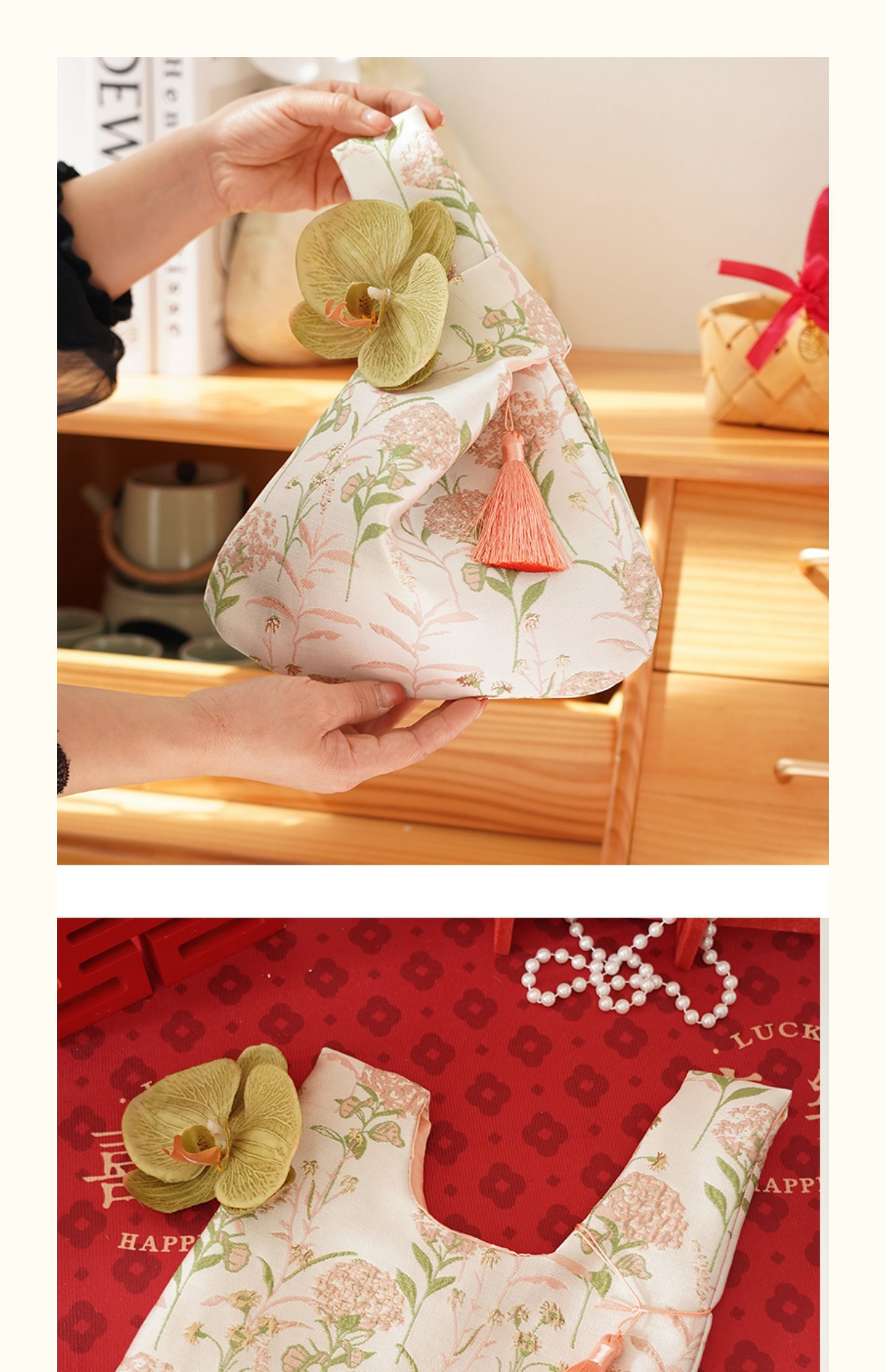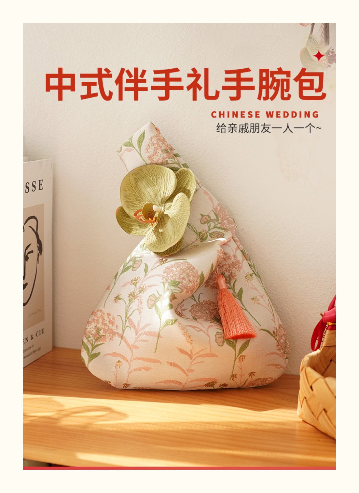新しいハイエンドのポータブルリストバッグ、ウェディングキャンディーバッグ、ギフトバッグ、ウェディングギフトバッグ、チューリップ中国風バッグ