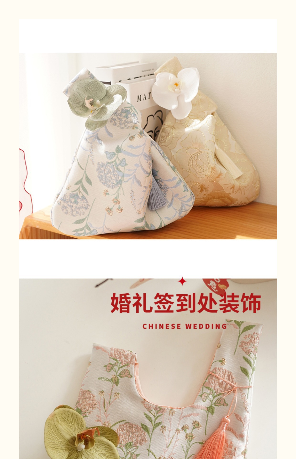 花嫁のお土産新中国式手首包金糸ジャカード流蘇結婚慶節礼箱軽贅沢収納袋礼箱