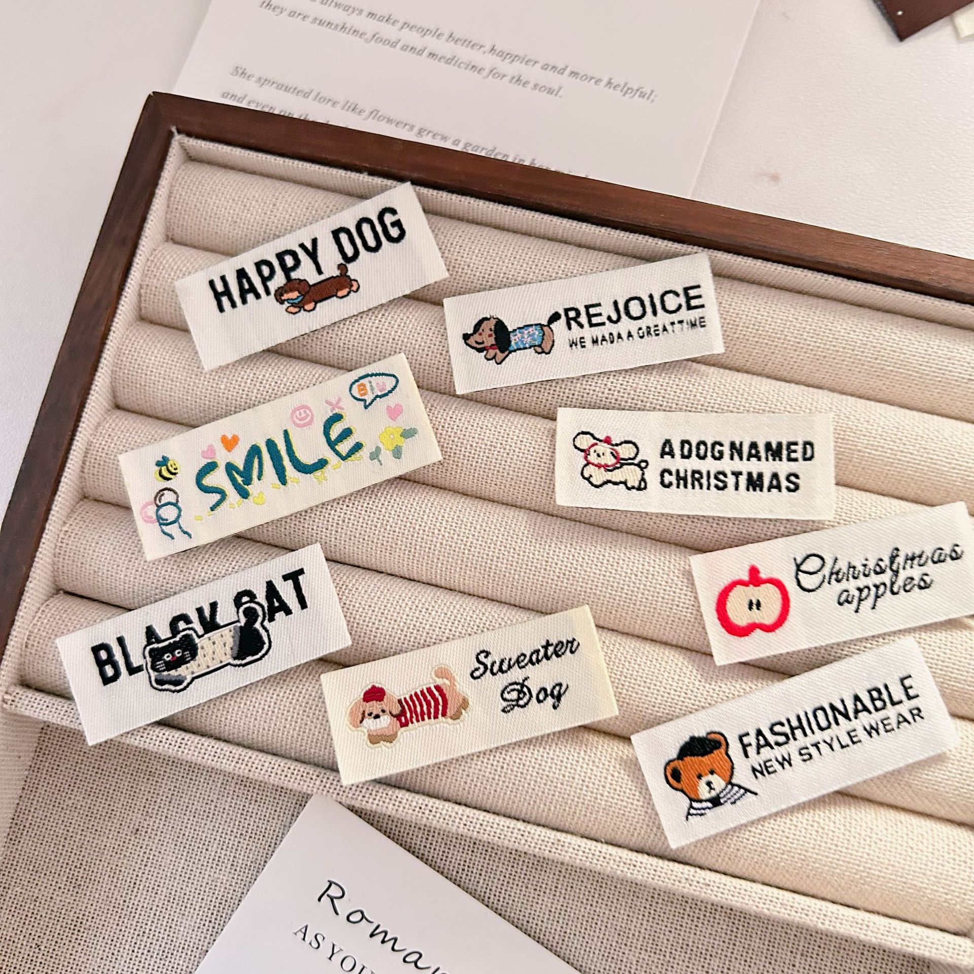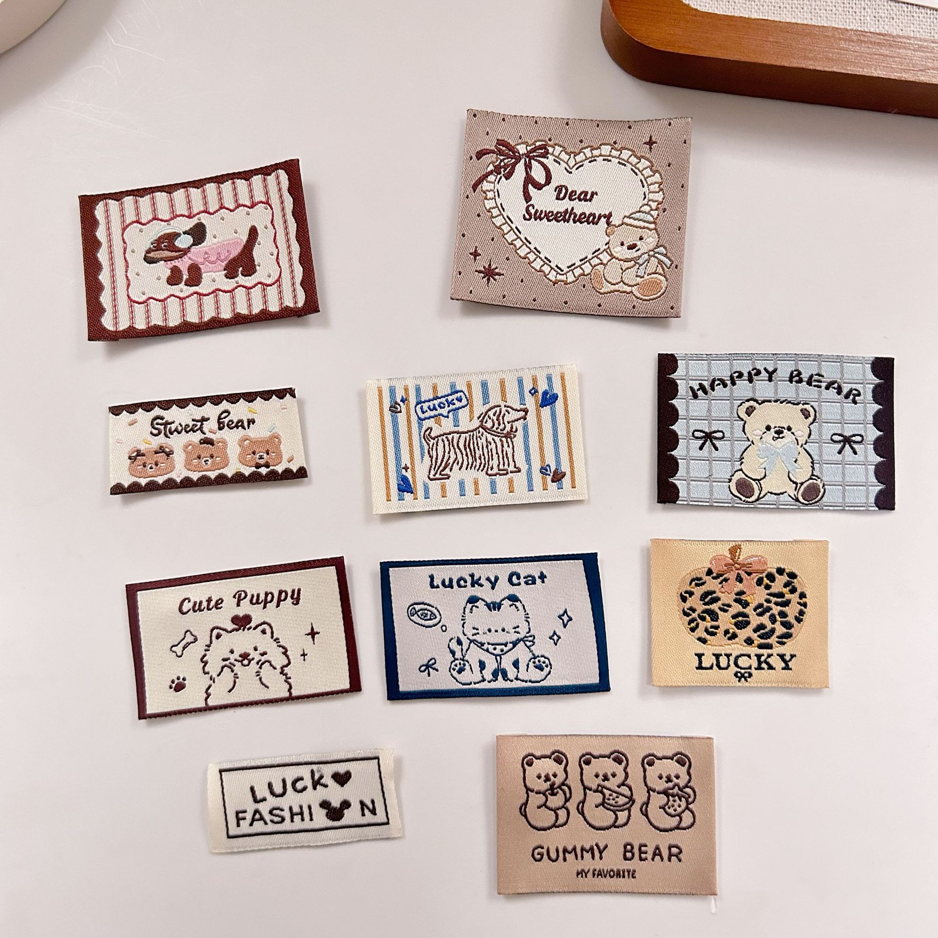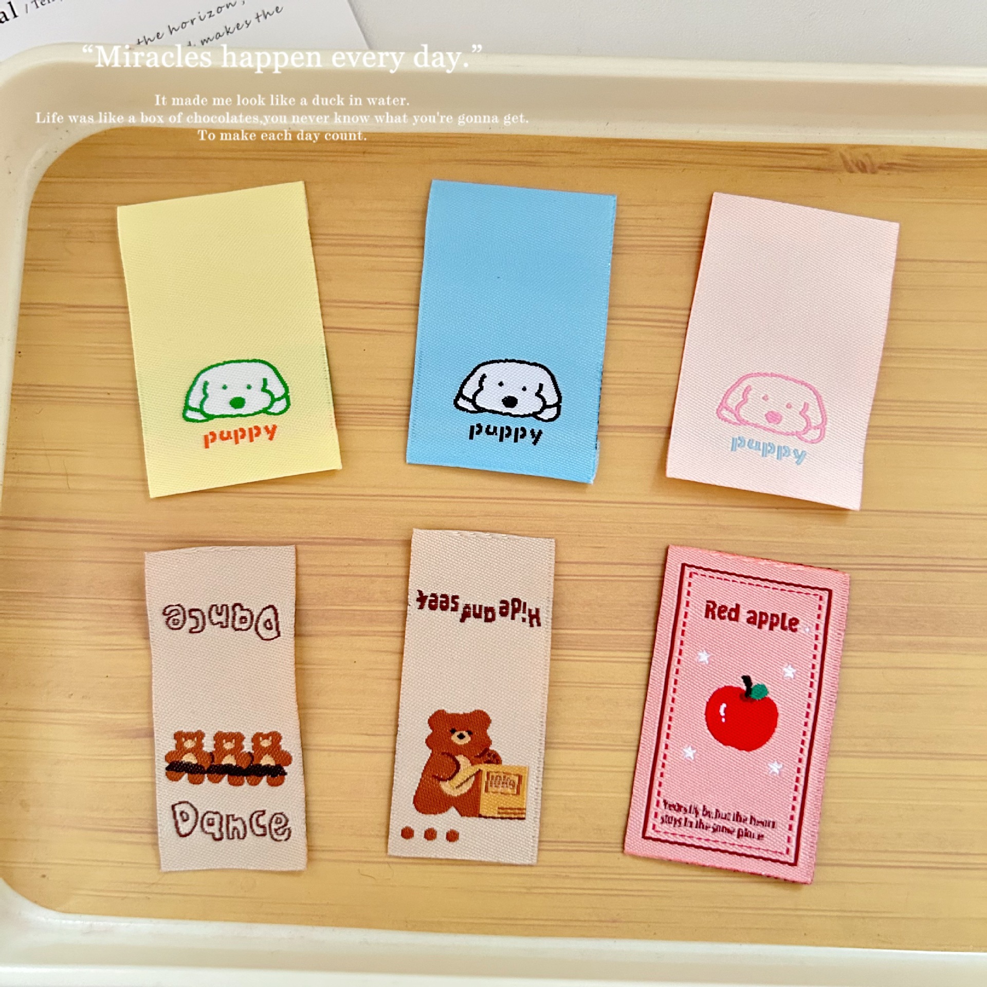 漫画かわいい子犬クマ布ラベル刺繍織ラベル布ラベル服襟ラベルバッグ帽子洗濯ラベルアクセサリー