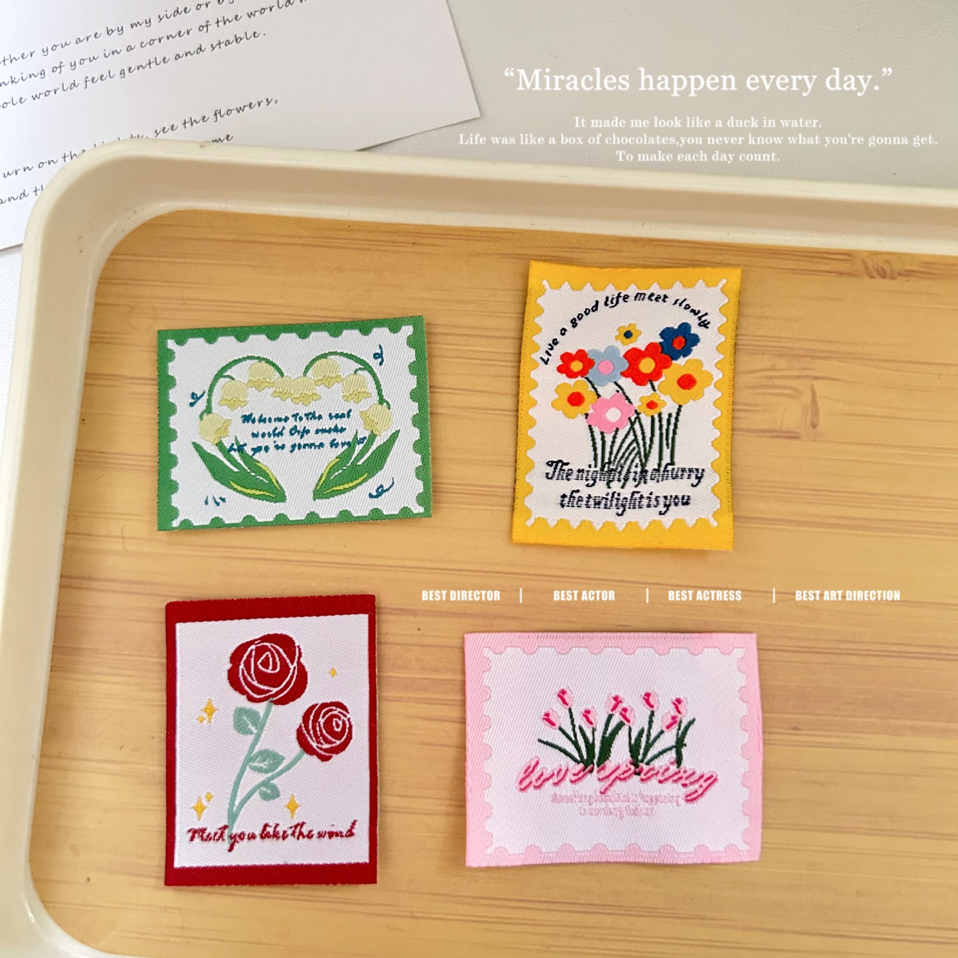 手作り diy 布ラベル花純綿布印刷ラベル商標綿ベルト服襟ラベルバッグ靴下装飾布ステッカー