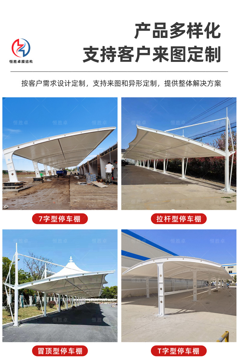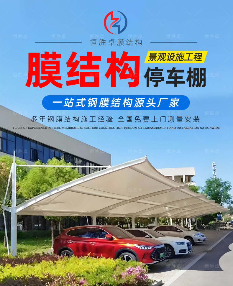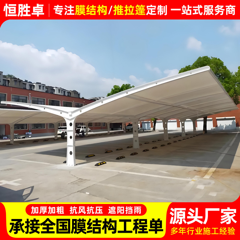 停车场停车位膜结构停车棚景区张拉膜汽车雨篷小区电动车遮阳车蓬