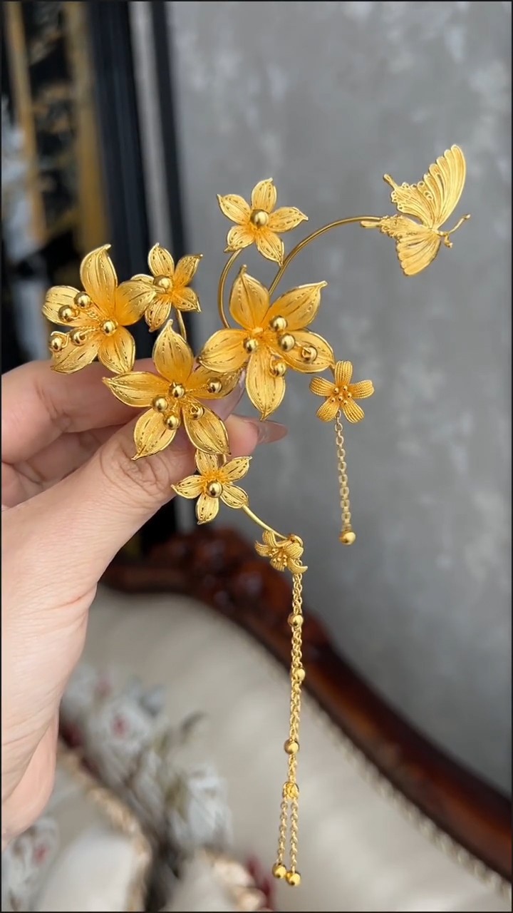 「花のように」花のようにイヤリング 蝶タッセル ノンホールピアス 女性用 ウェディング 3ゴールド シュイヘ イヤリング