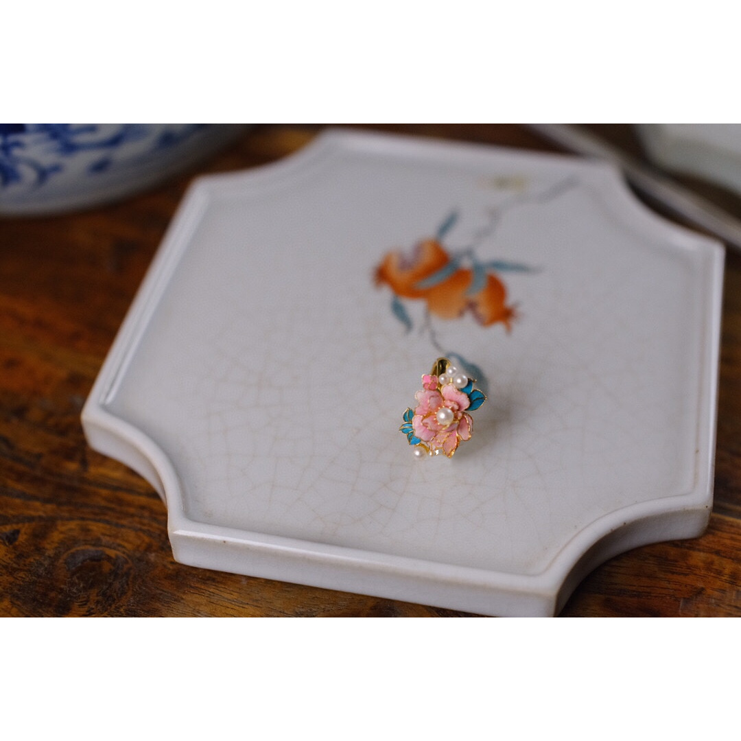 金は翠の花の糸をまねて牡丹の花の指輪を焼きます。