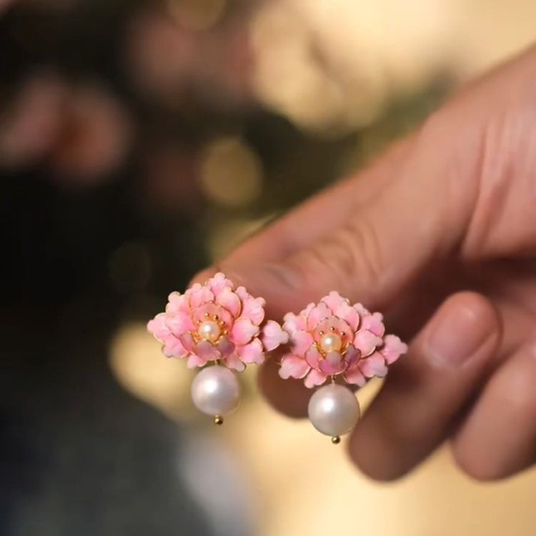 金は翠の花の糸のピンクの薔薇のピアスの女性をまねて、職人の心を鍛えて純粋な手作業で古典的な風格を作ります。
