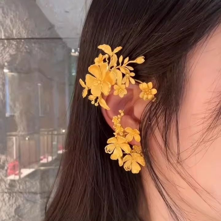 「繁花似锦」繁花似锦耳挂精致金色轻奢风无耳洞耳夹结婚秀禾耳饰