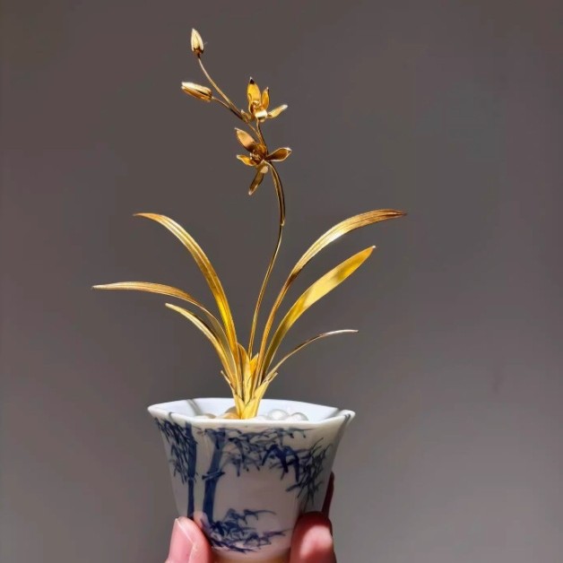 【複数のスタイルをご用意】ゴールドの小さな蘭の装飾品は、ファッショナブルで美しい、クラシックなデザインで、軽くて豪華で高級感のある小さな装飾品です。