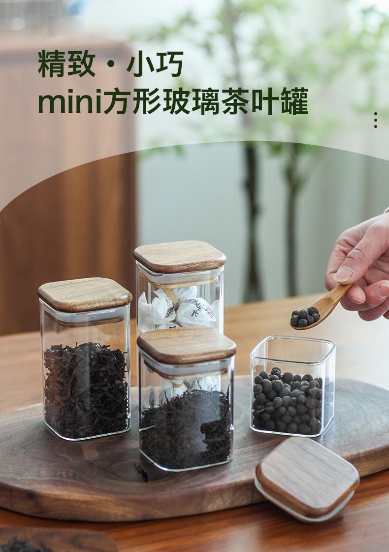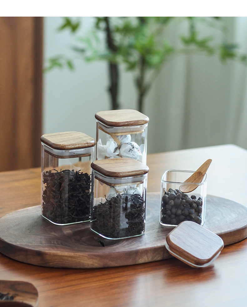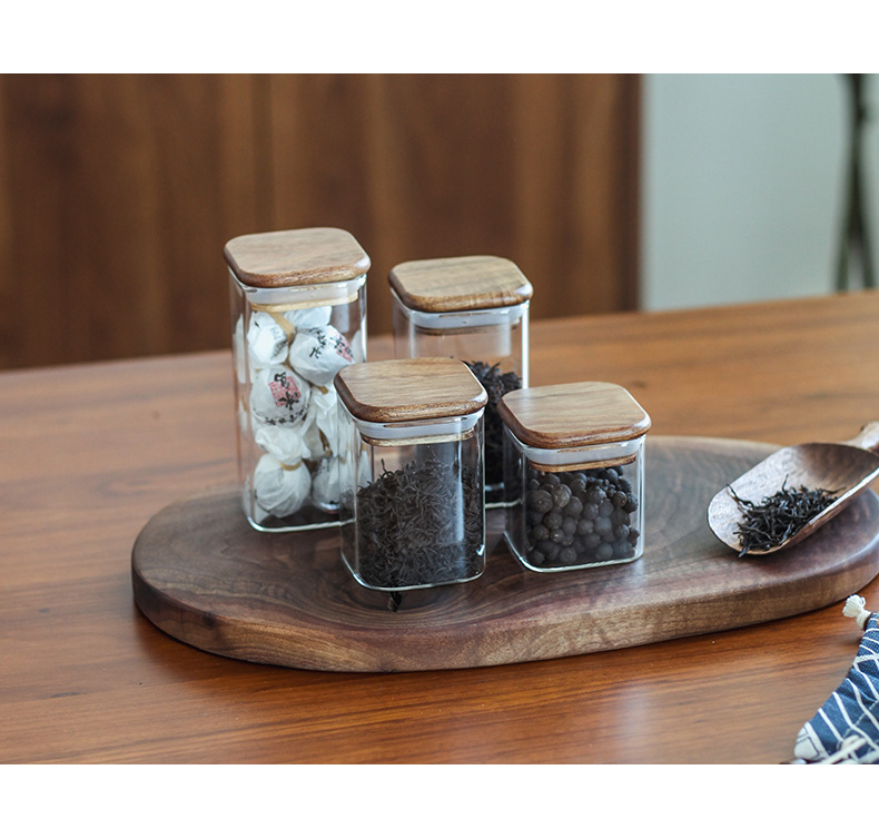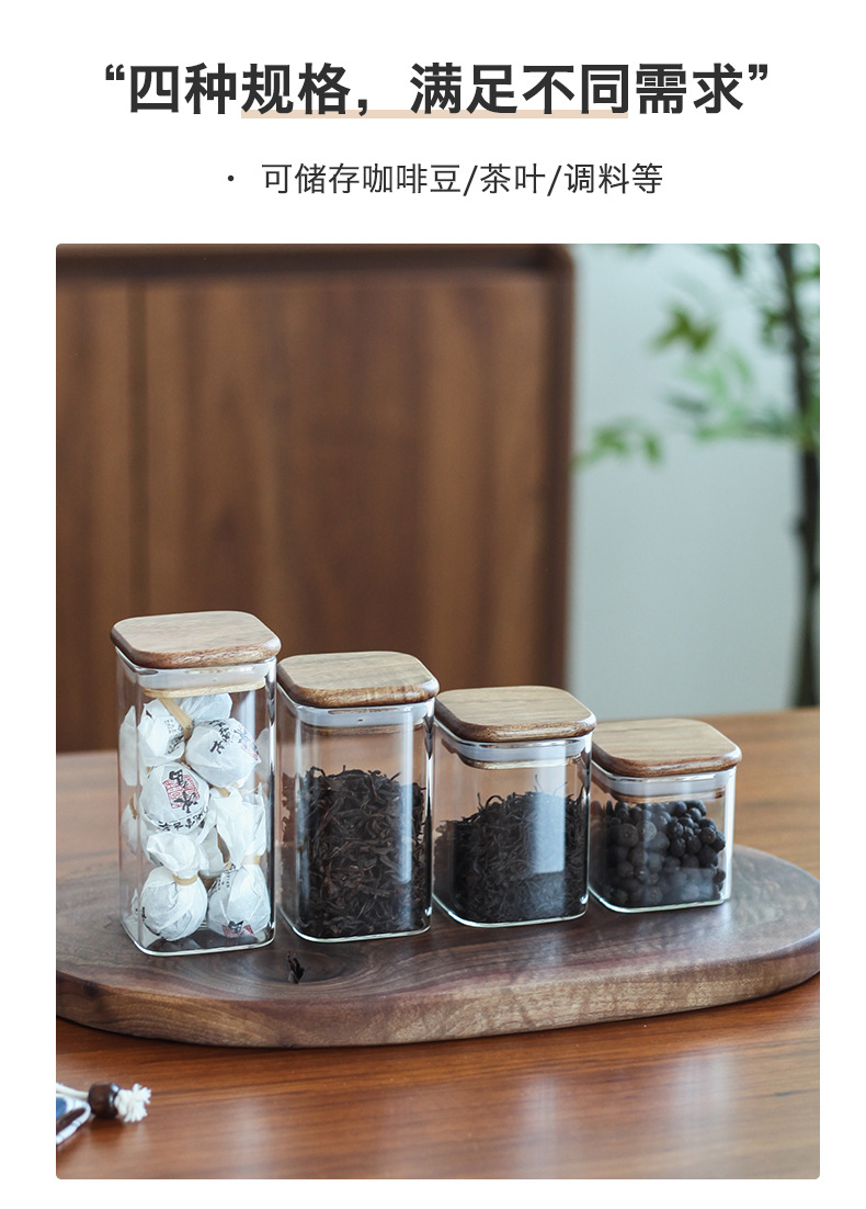 無垢材カバーガラス密封瓶小容量家庭用穀物密封瓶透明茶コーヒー豆保存瓶