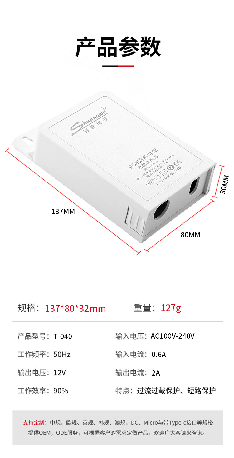 12V2A 電源アダプタ壁掛け屋外防雨防蚊カメラ監視スイッチング電源メーカー