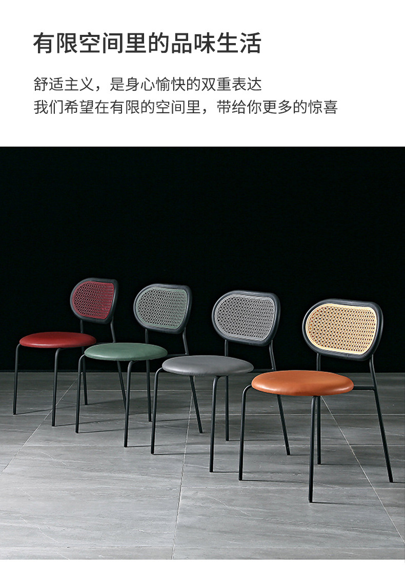 复古仿藤编椅休闲简约咖啡厅软包椅创意ins风铁艺椅子镂空靠背椅