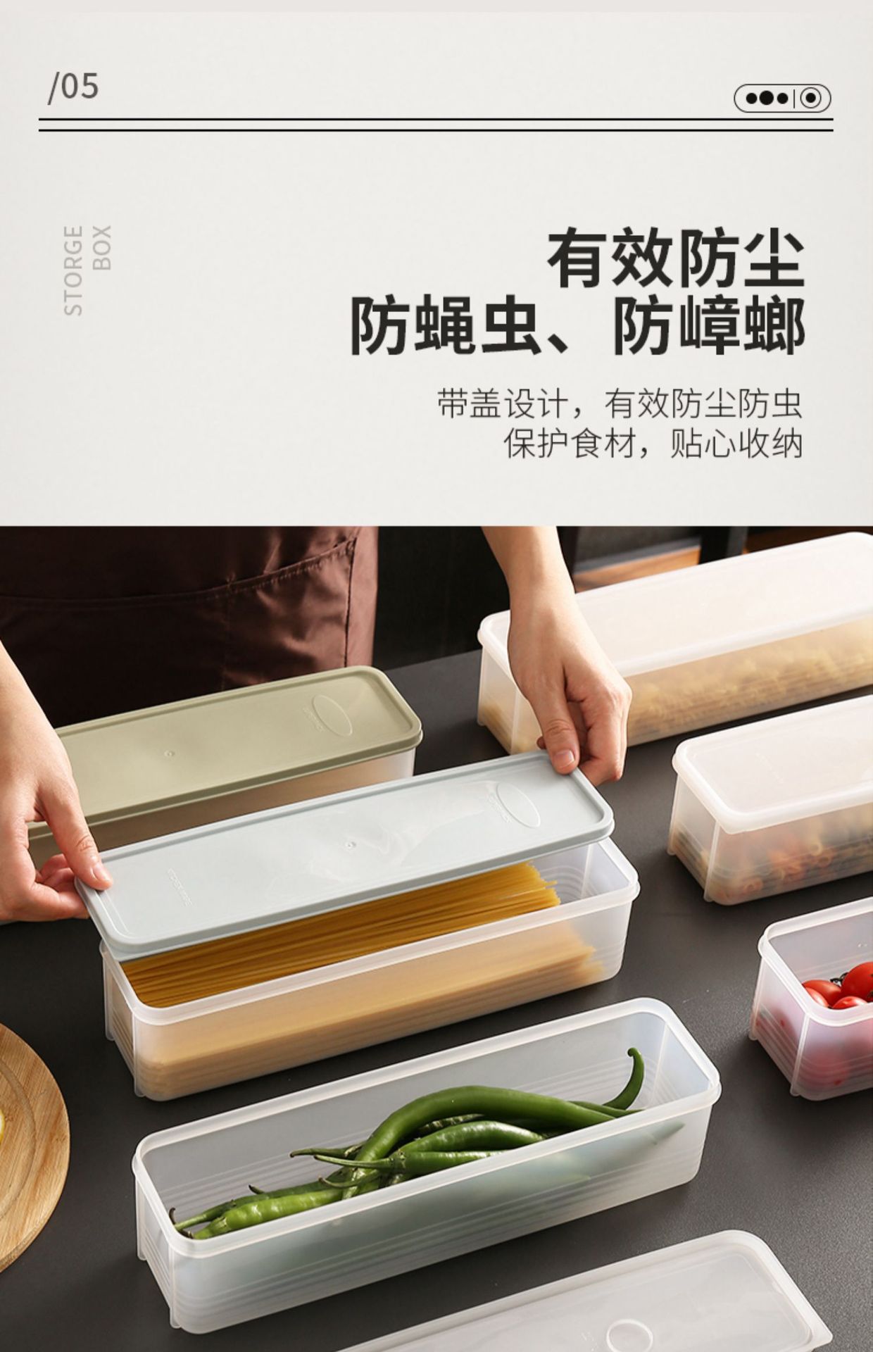 食品级面条收纳盒长方形塑料冰箱厨房密封盒保鲜盒带盖杂粮挂面盒