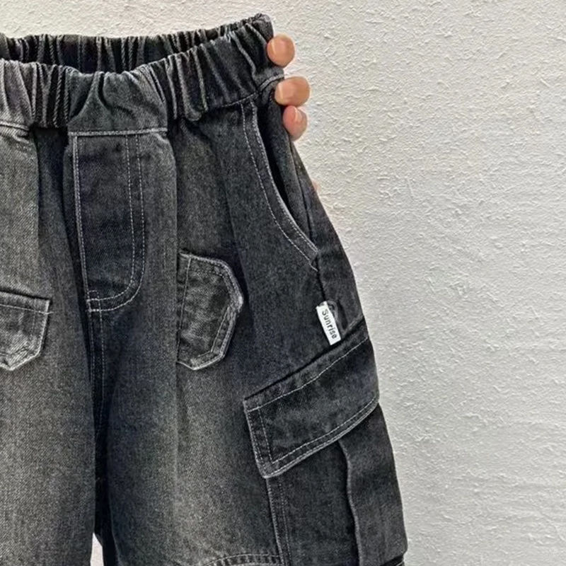 2025年男の子夏新作韓国風おしゃれ多ポケットワークショーツ子供服子供夏服デニムパンツ