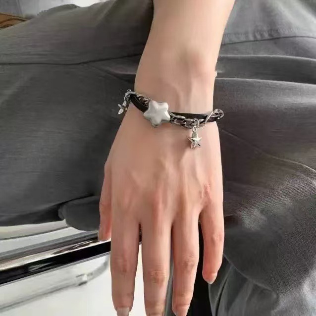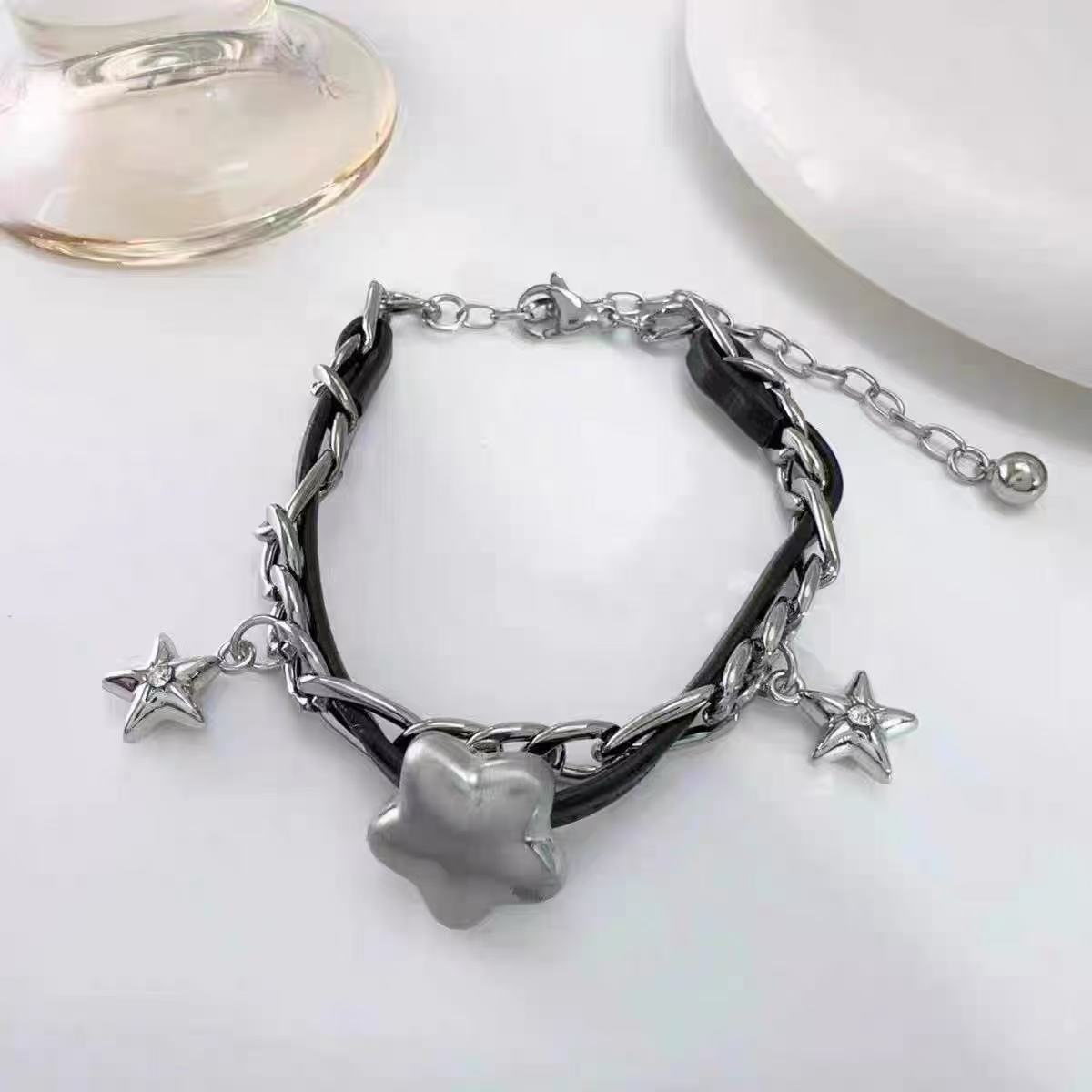 Y2K シルバーファットスターチョーカーブレスレット甘くてクールなホットガールサブカルチャーパーソナリティブレスレットレトロ多用途ハンドジュエリー