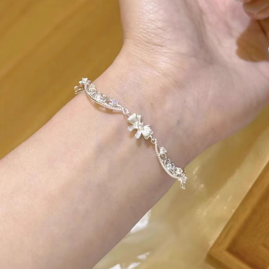 甜美蕾丝纹蝴蝶结手链女轻奢闪钻小众高级感气质手环简约百搭手饰