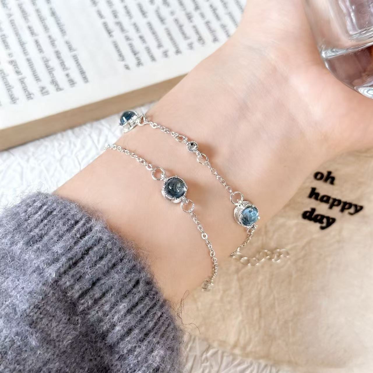 小红书爆款天然海蓝宝手链女双层叠戴轻奢气质小众精致ins风手饰