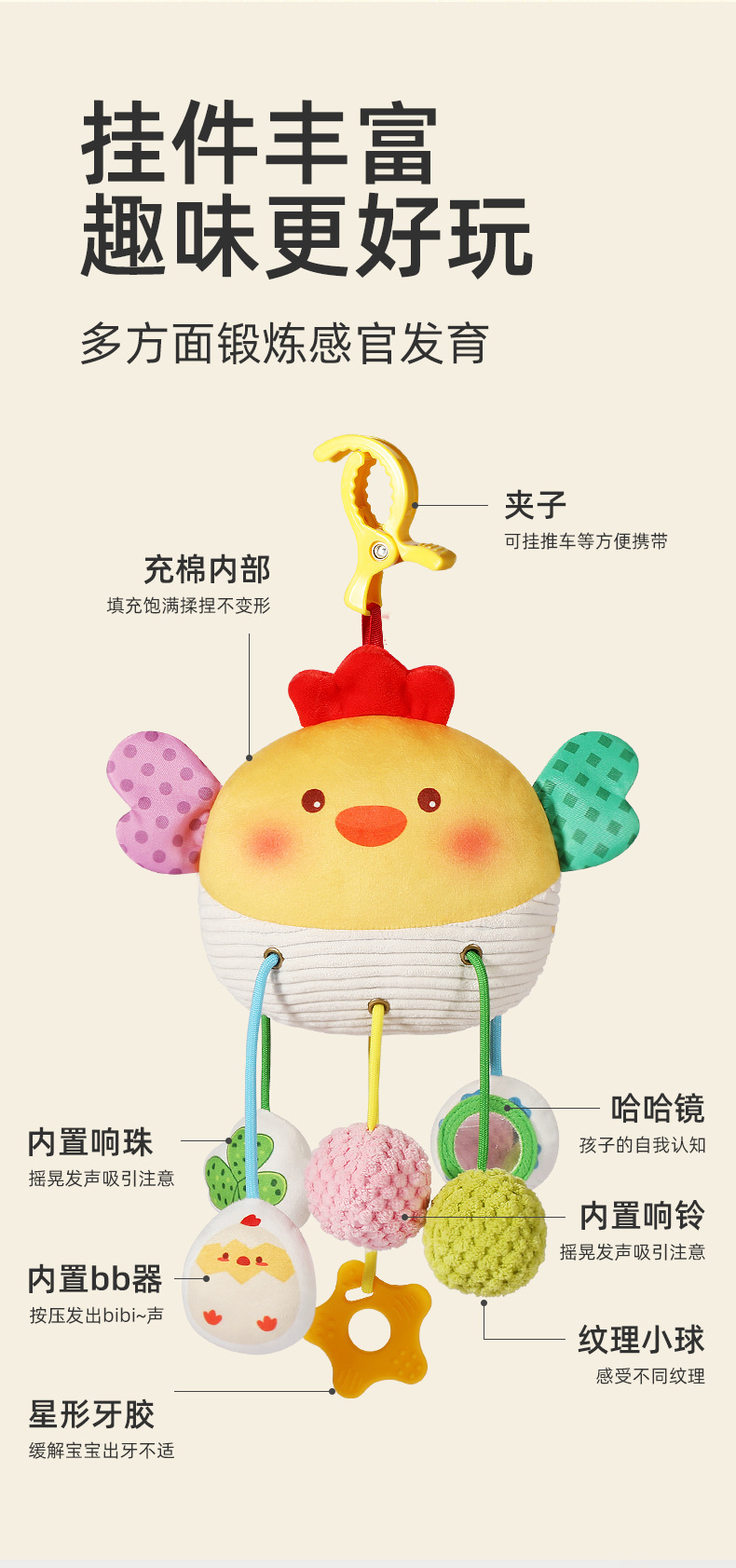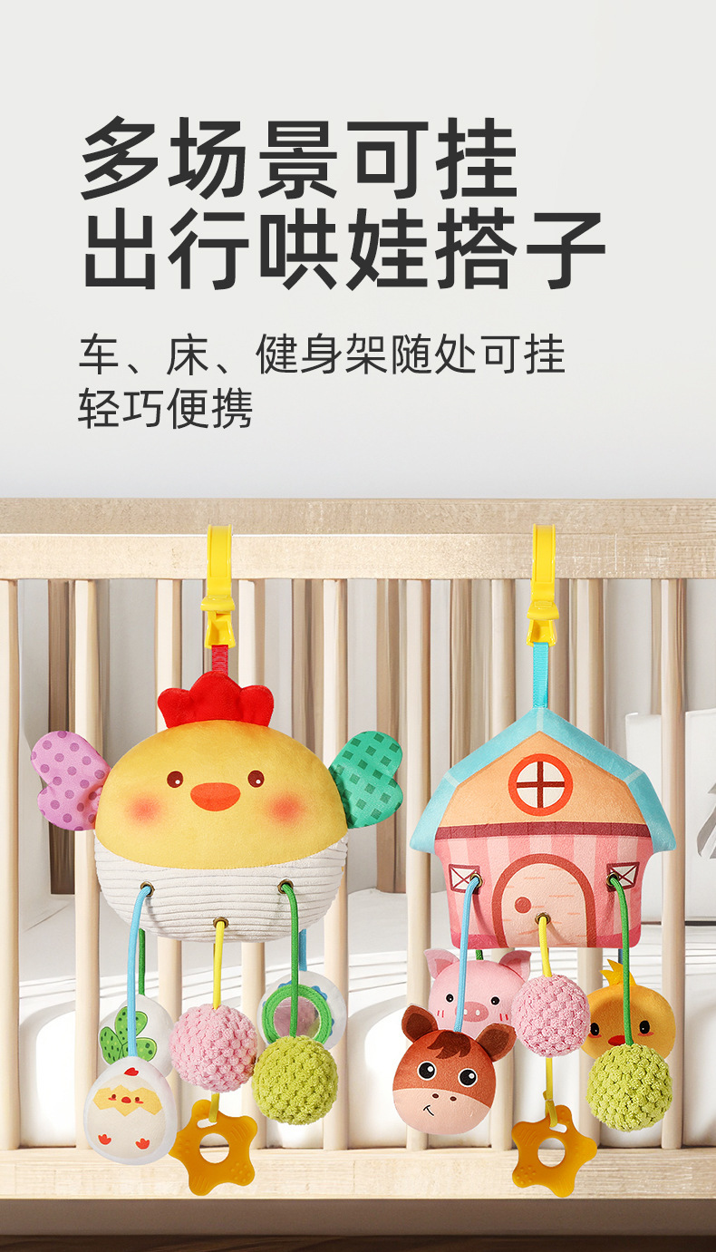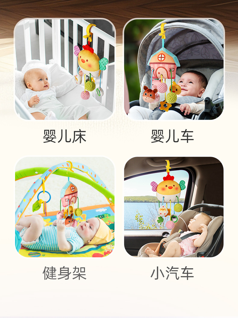 宝宝早教毛绒萌鸡抽抽乐婴儿推车摇铃挂件玩具新生儿抓握安抚床铃