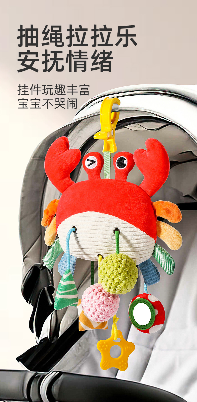 宝宝抽抽乐婴儿玩具螃蟹拉拉乐挂件新生儿手推车床挂摇铃安抚哄娃