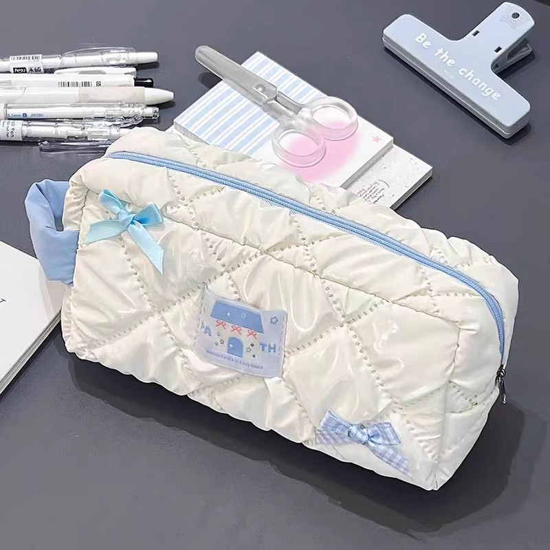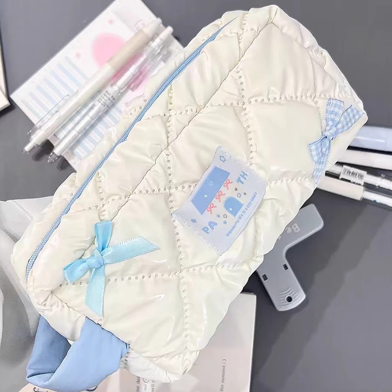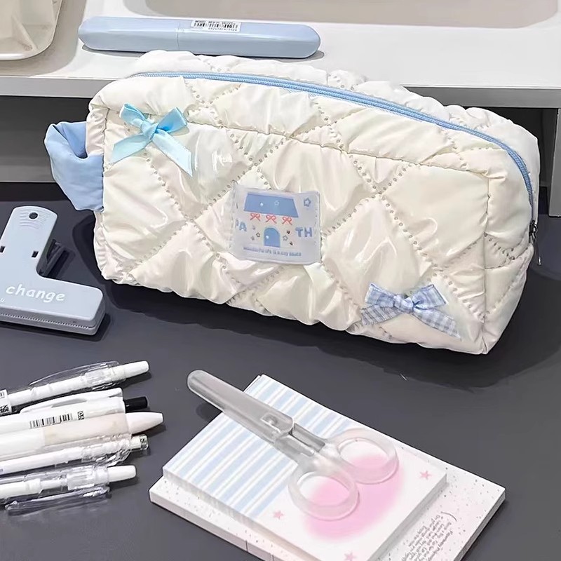 新品夏沫ブルーリボンペンポーチins高颜値学生乙女心大容量文房具収納ポーチ
