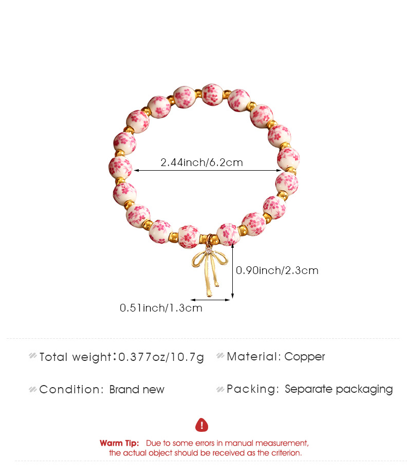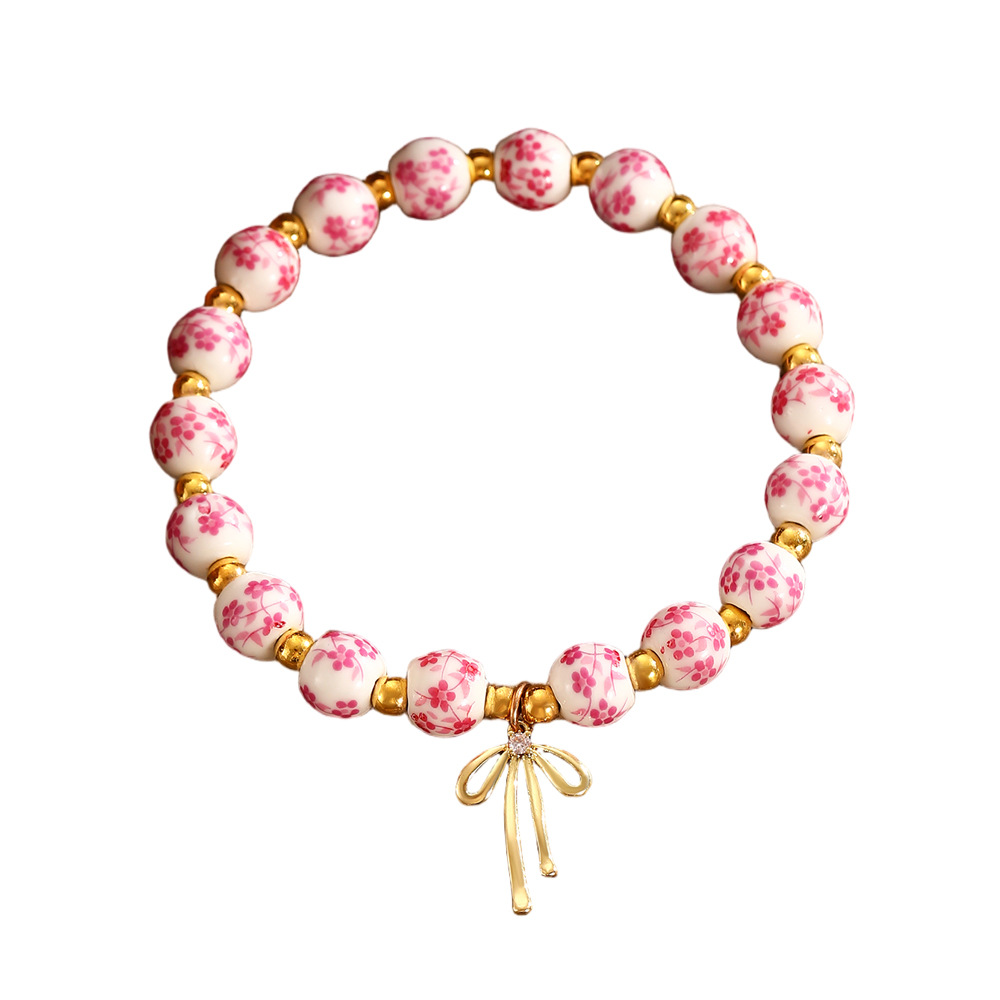 さまざまな花柄の磁器ビーズブレスレット、中国風のレトロでエレガントなハンドジュエリーギフトを備えたクロスボーダーホットセールのリボンブレスレット
