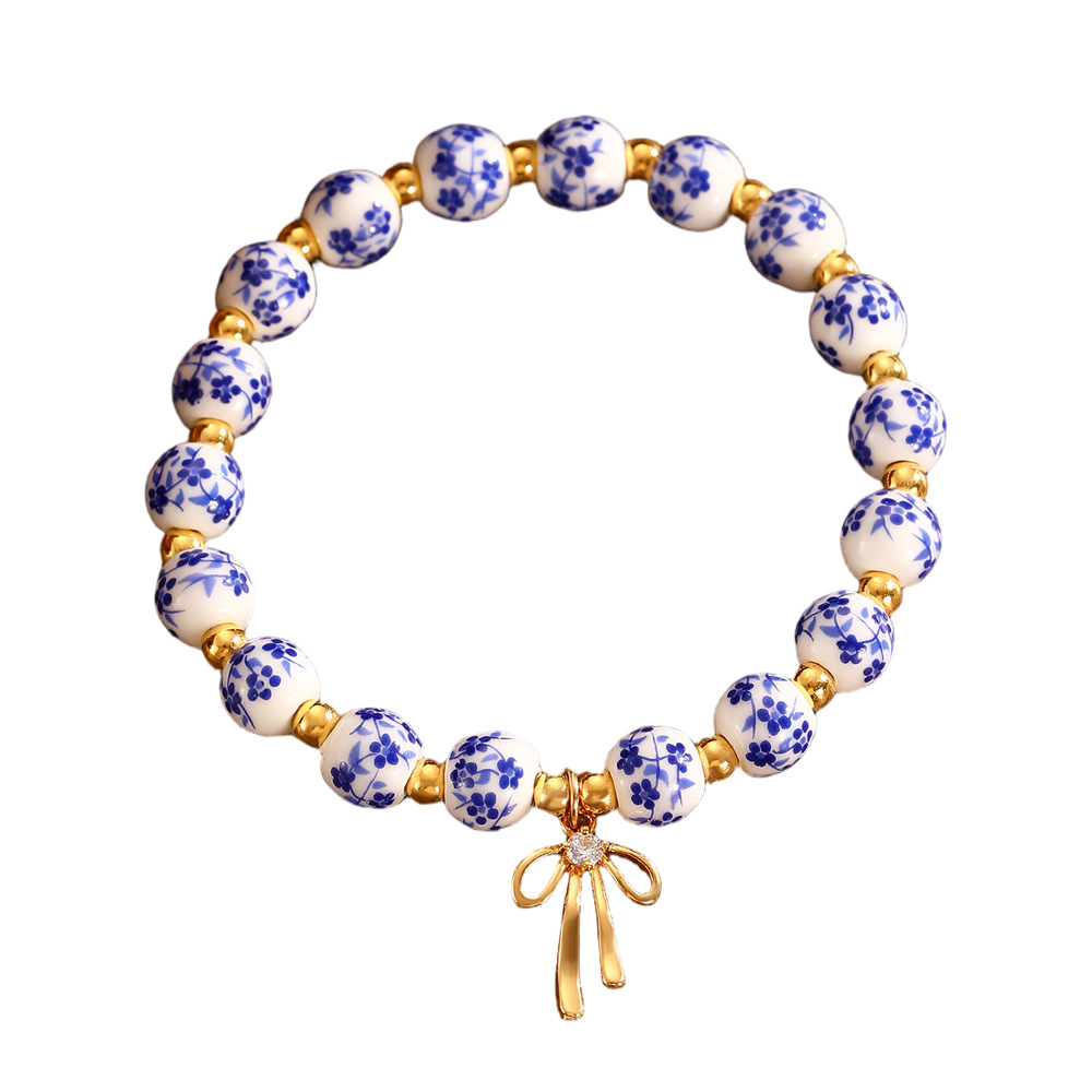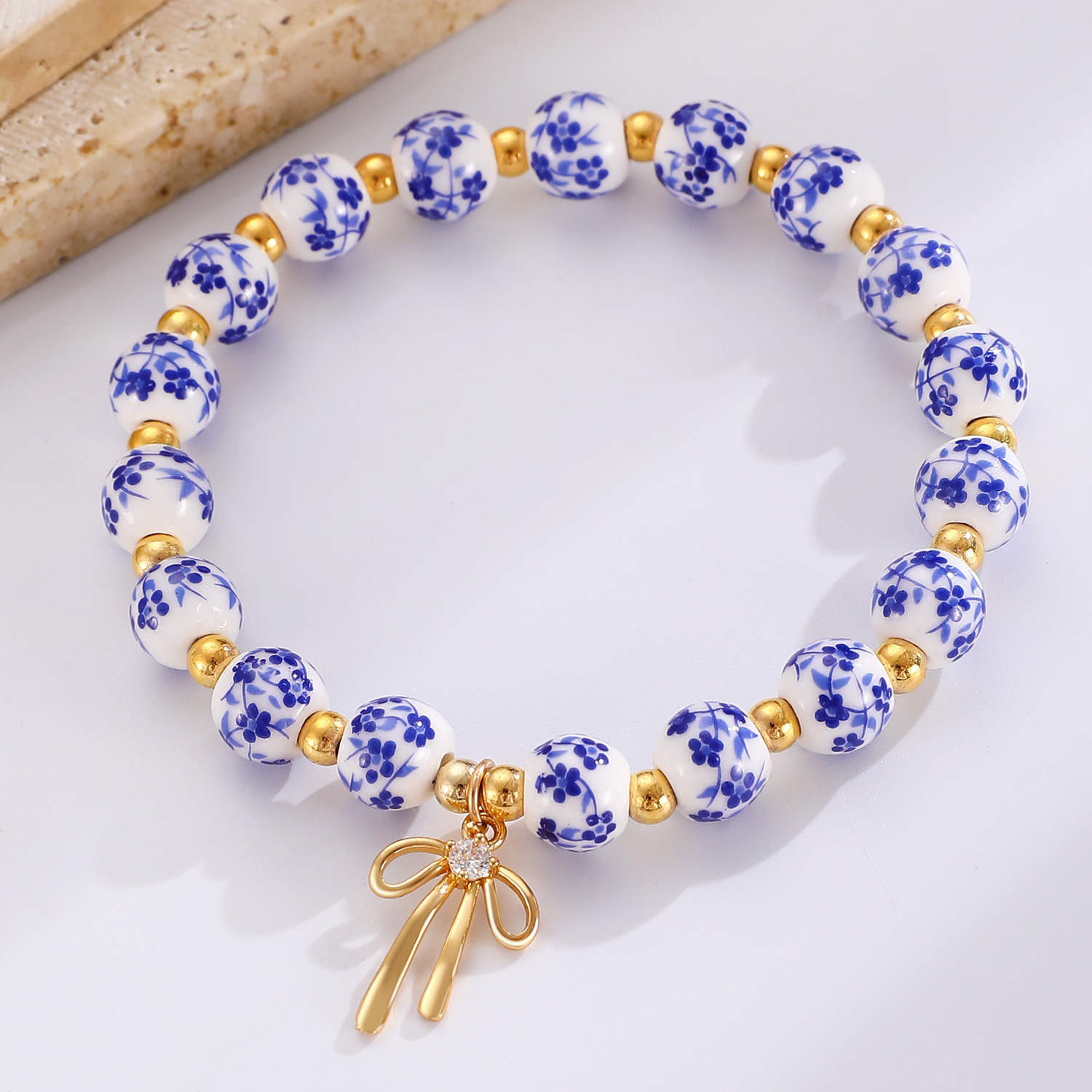 2025新商品中国風青花磁器蝶結び金玉弾力ブレスレット
