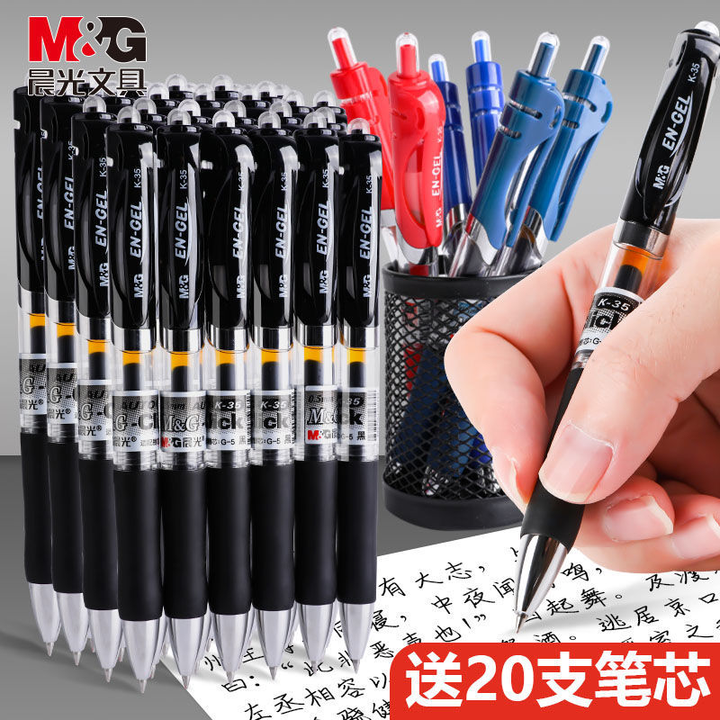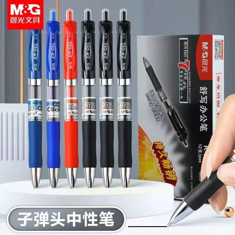晨光笔K35水性签字笔按动中性笔学生商务碳素笔0.5子弹头刷题笔芯