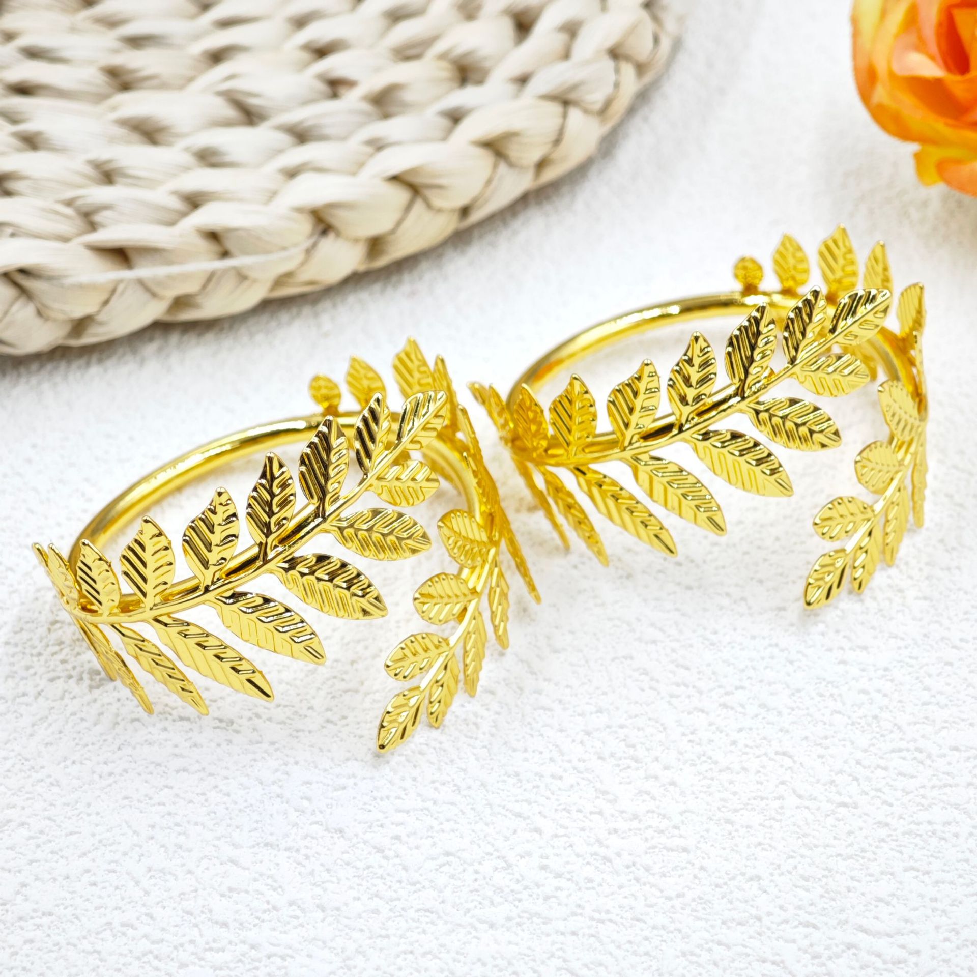 木の葉の金色のナプキンリング金属ナプキンリング高級ホテル洋風レストラン休日ナプキンリングパーティー装飾