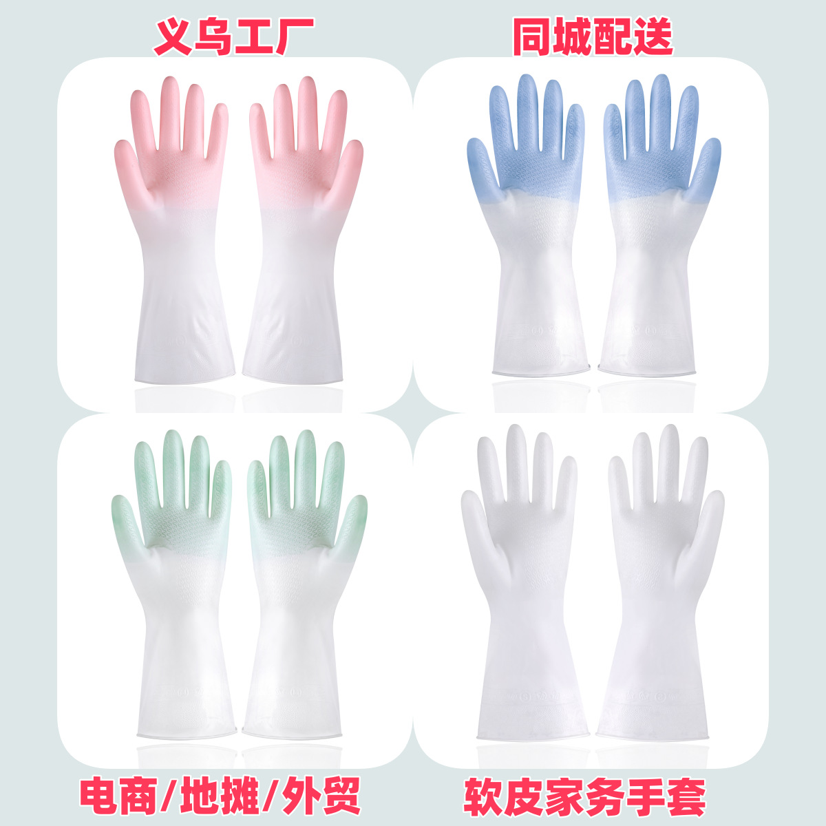 新しい耐久性のある耐摩耗性のある四季の皿洗い手袋女性の厚い防水家事台所の洗濯手袋プラスチック