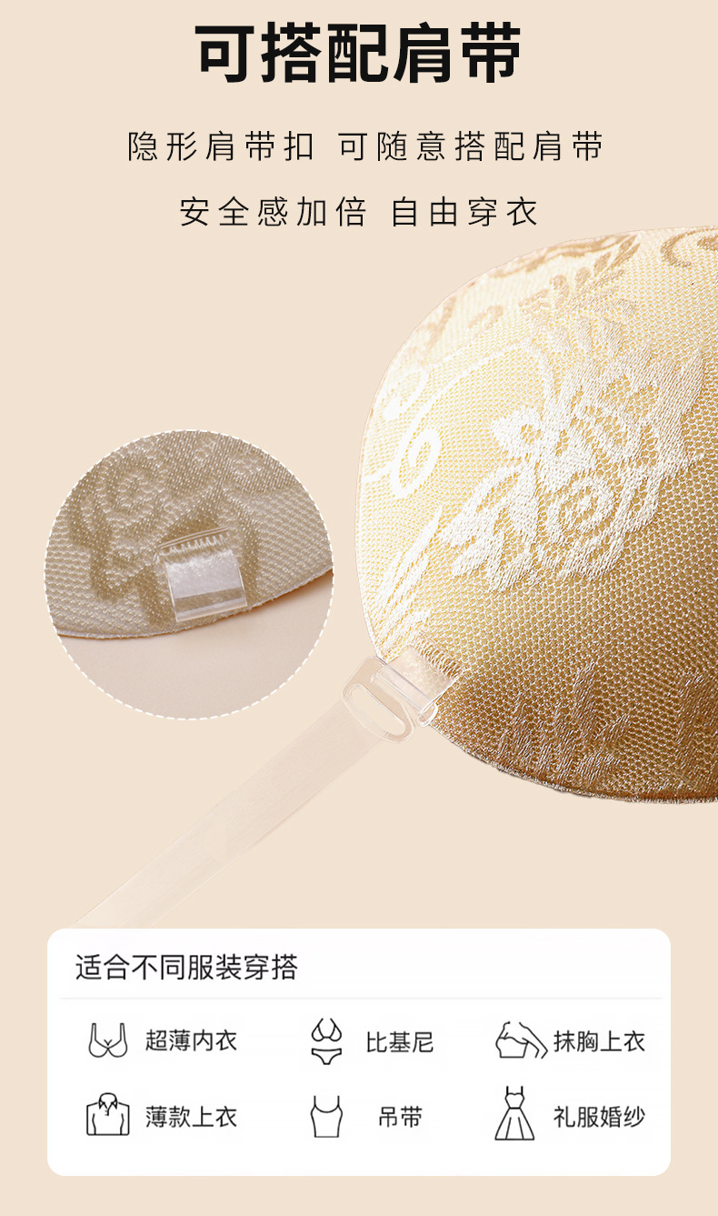 跨境爆款硅胶胸贴厚款隐形乳贴内衣无肩带聚拢不掉上托防走光文胸