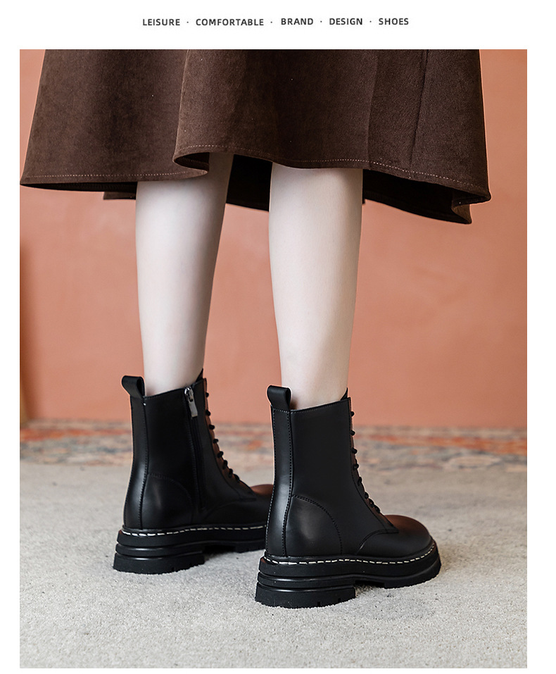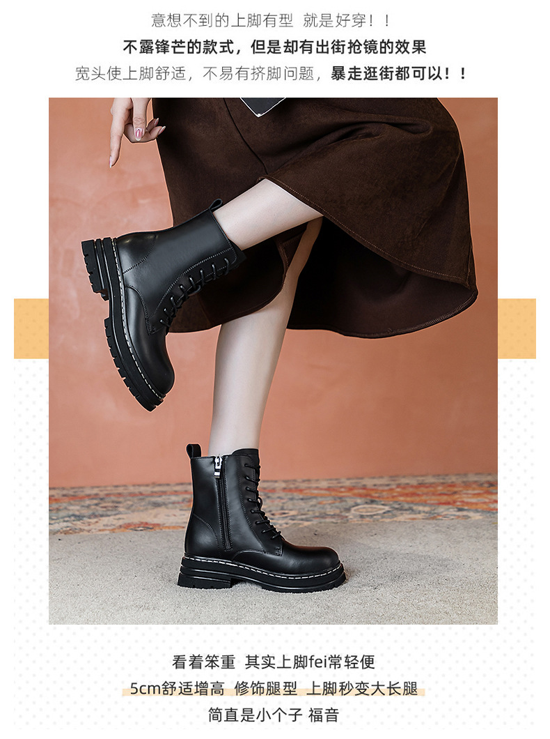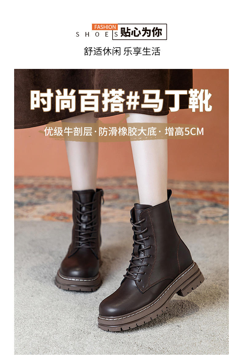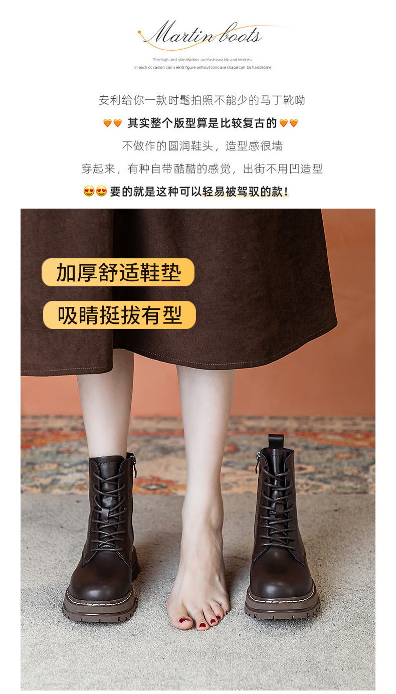 超厚底マーティンブーツ レディース 2025年秋新作 イギリス風ショートブーツ レディース 身長アップ ソフトレザー 万能 ネット人気ブーツ レディース