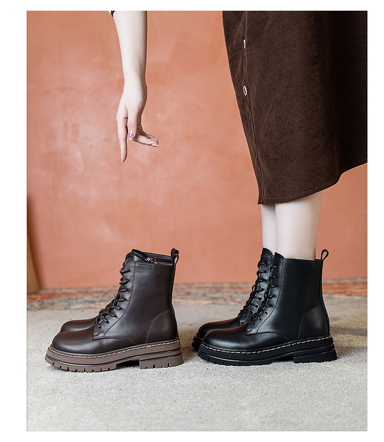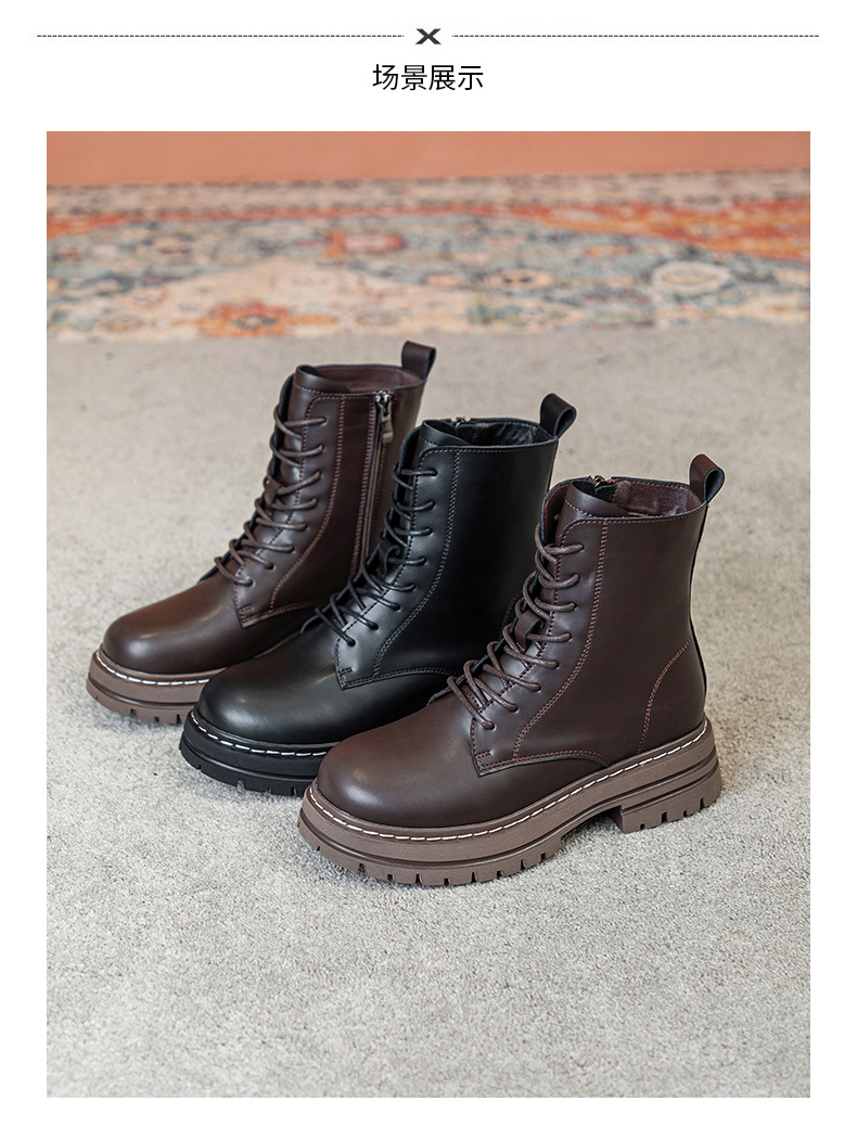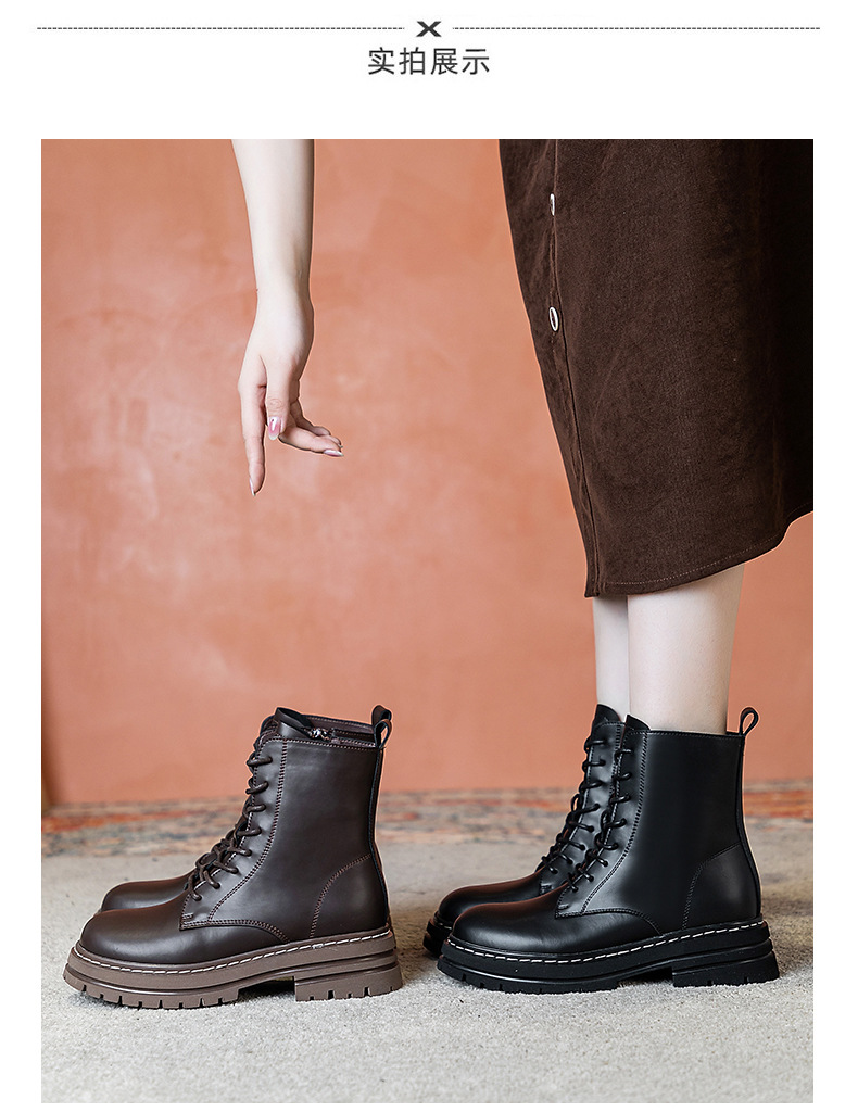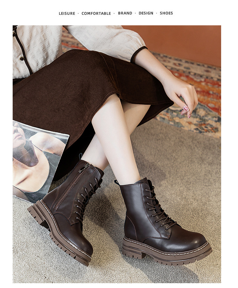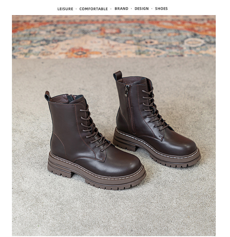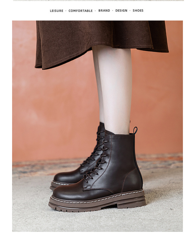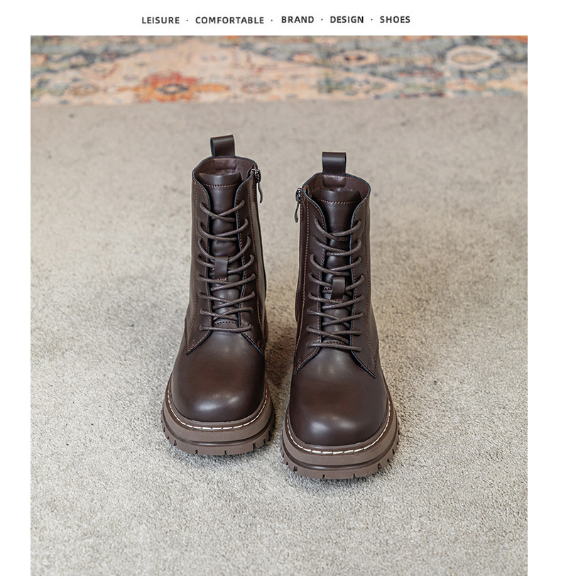 Chaoyuan マーティンブーツ レディース 英国スタイル 2023 秋冬 クラシック 厚底ブーツ レースアップ 日本製 ベルベット ショートブーツ レディース 身長アップ