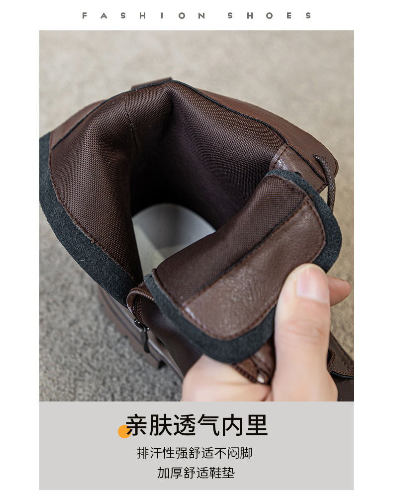 Chaoyuan マーティンブーツ女性のための 2025 秋と冬の新しい英国スタイルのフラットオートバイショートブーツ女性のためのベルベット肥厚レトロレザーブーツ