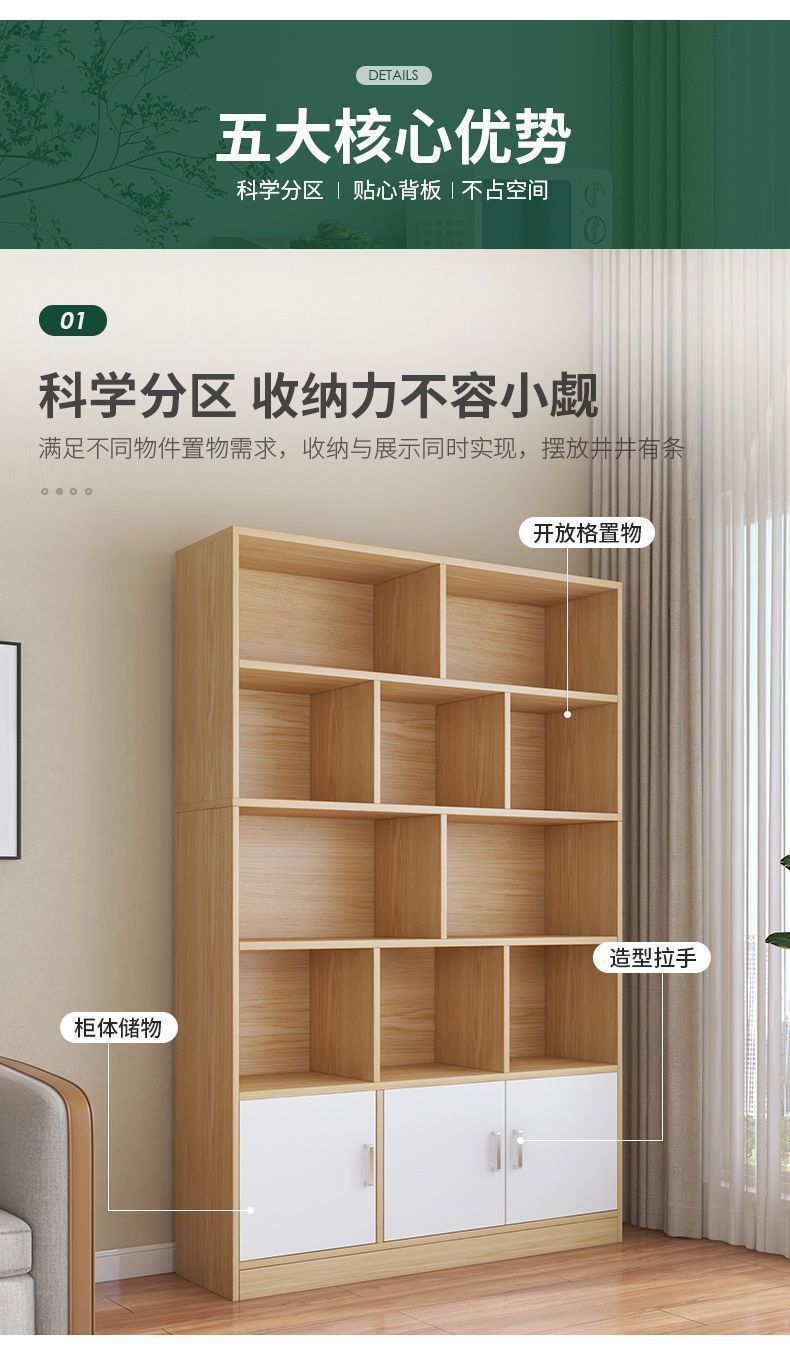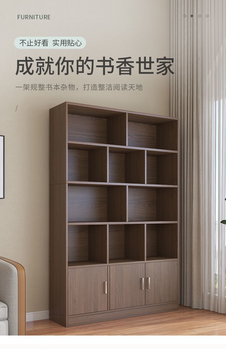 简易书柜多层靠墙办公室客厅收纳柜家用置物架学生木柜子落地书架