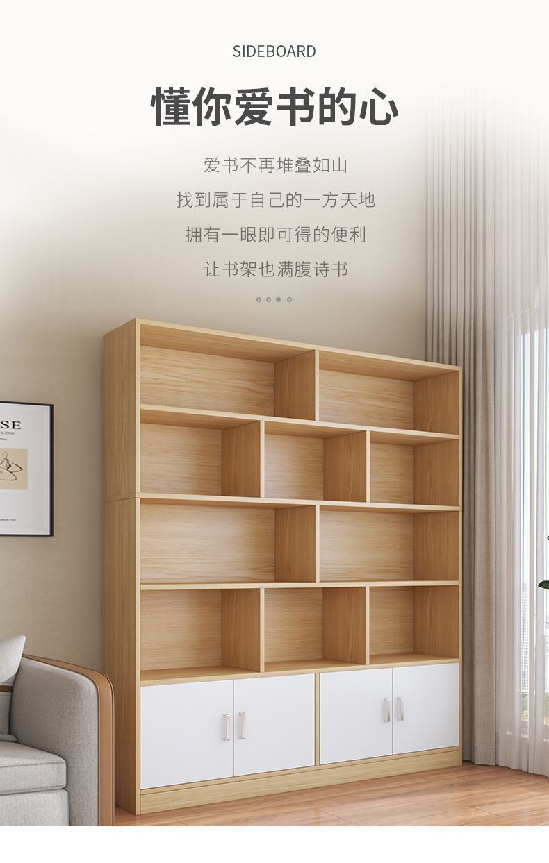 书柜一体靠墙办公室客厅收纳柜家用置物架学生木柜子落地书架