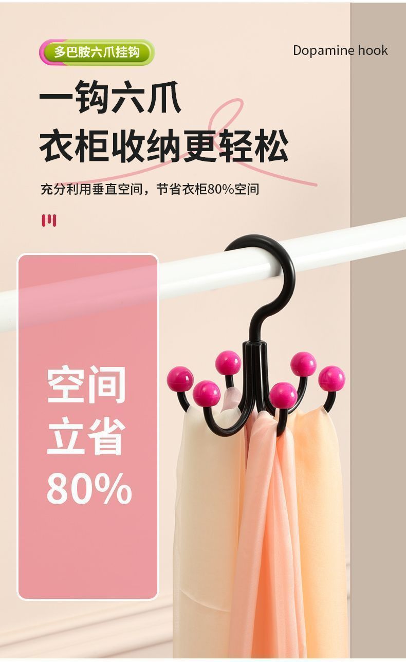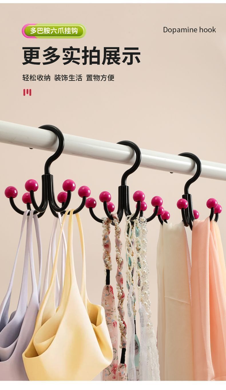 衣架多巴胺六爪旋转挂钩文胸内衣衣柜挂钩收纳神器宿舍学生晾衣架