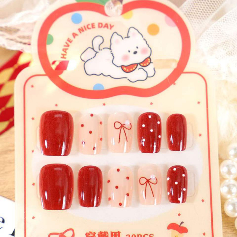 青壹坊 浪漫波点短甲穿戴甲 创意女生穿戴甲高颜值女生美甲贴