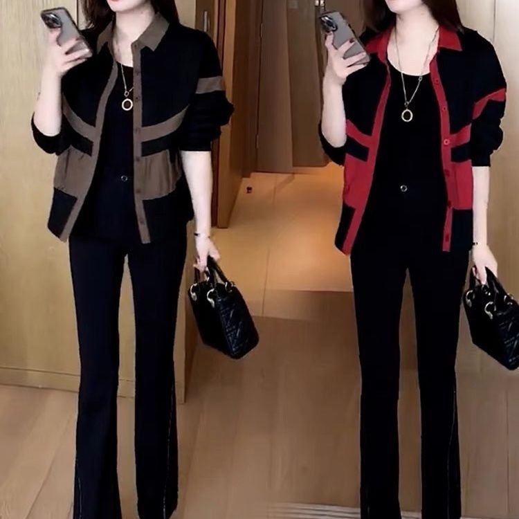 2025 春と秋の新ルーズスリムコントラストカラーの女性の薄いコートトップポロ襟ステッチファッション年齢軽減ジャケット
