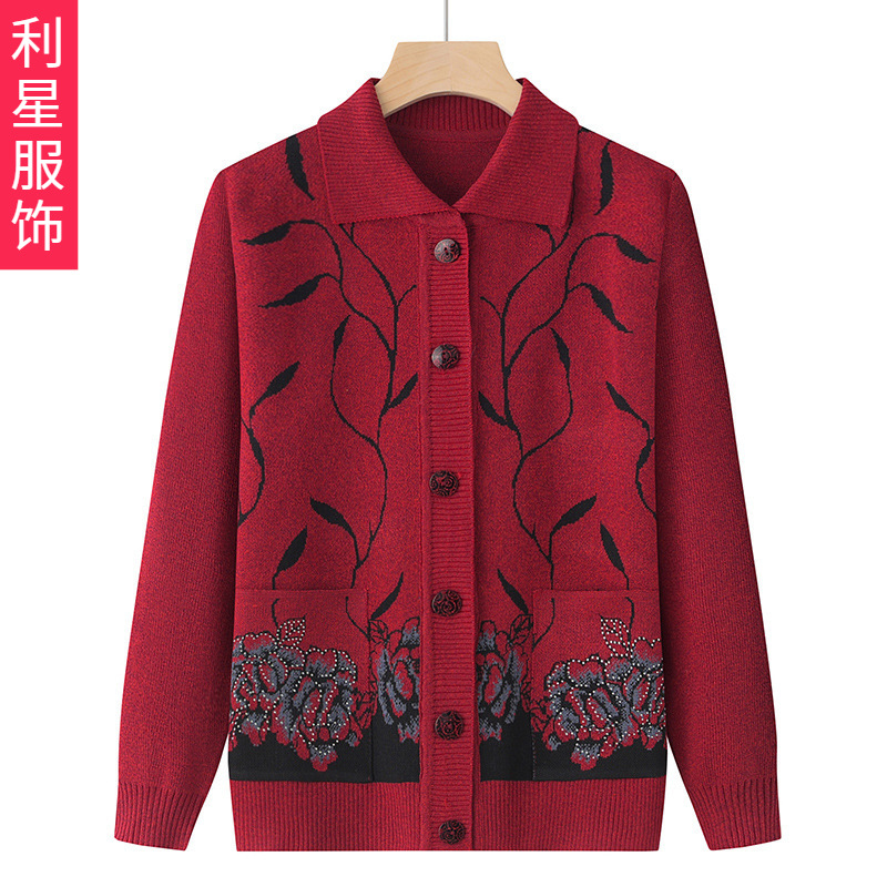 中高年のセーターの女性のおばあさんの春の服のコートのお母さんの春秋の老人の襟の薄いタイプのおばあさんの服はゆったりしています。