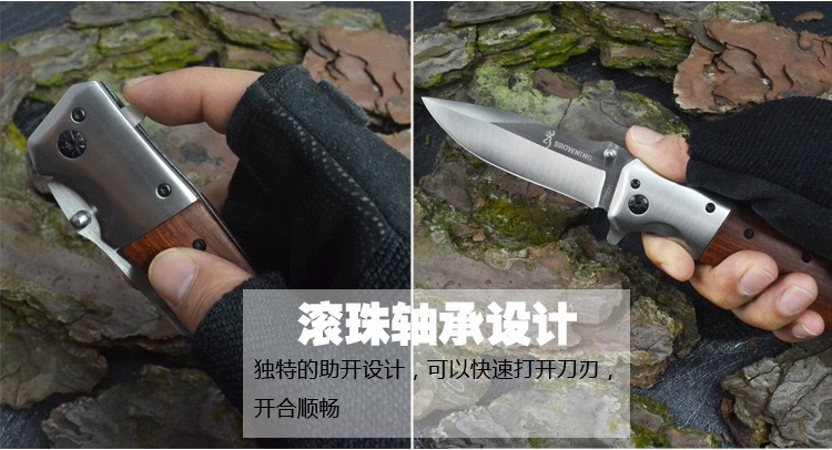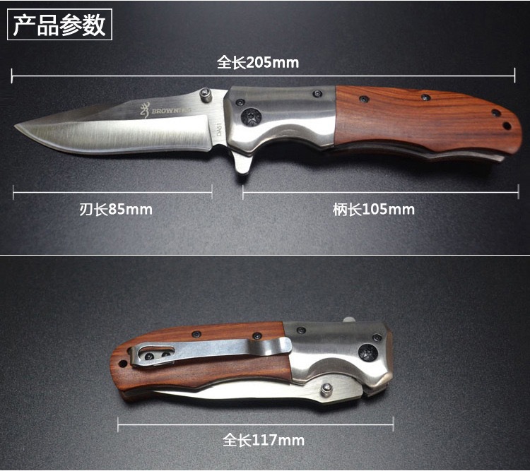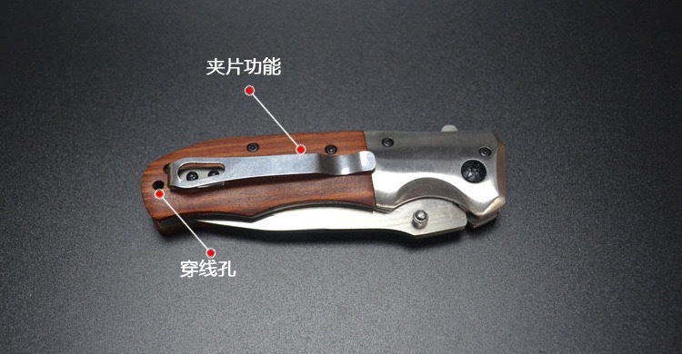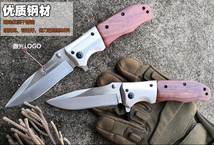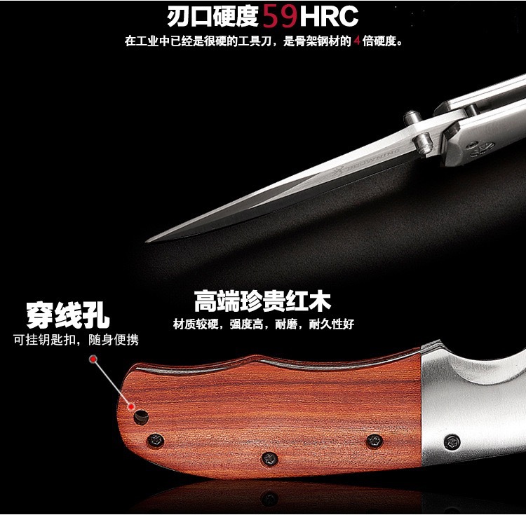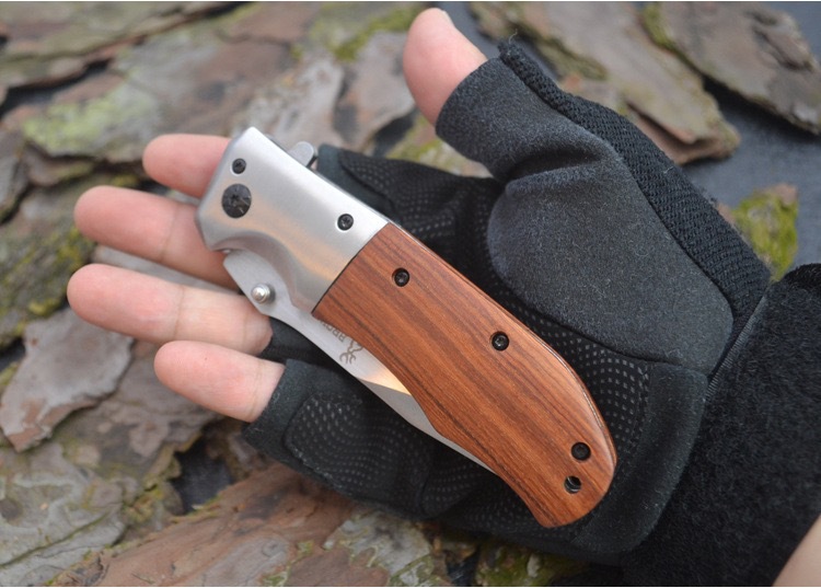 メーカー卸売アウトドアポケットナイフポータブルキャンプポータブルステンレス鋼カラー木製ハンドル高硬度折りたたみナイフ