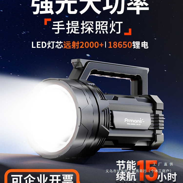 懐中電灯充電式強力な光超高輝度ハイパワー大容量家庭用ポータブルサーチライト屋外照明