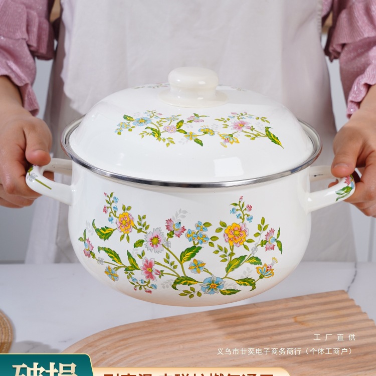 エナメル双耳スープポット、昔ながらのエナメルエナメル煮込みポット、蓋付きラード缶、スープヌードルボウル、豚油缶、小鍋