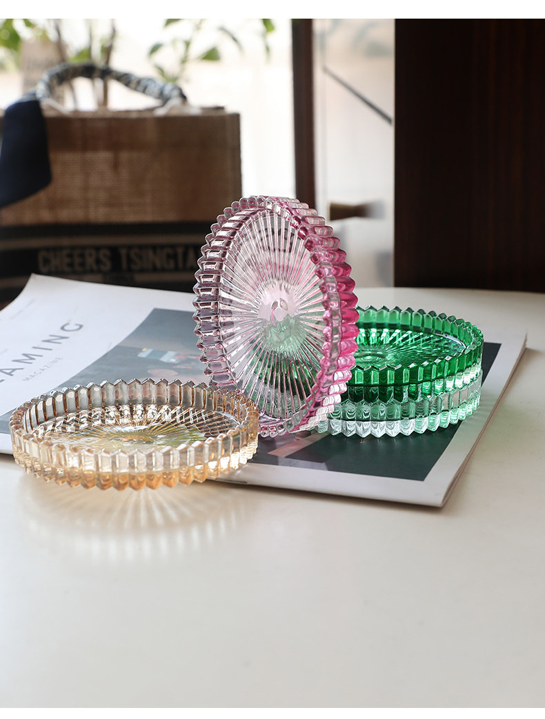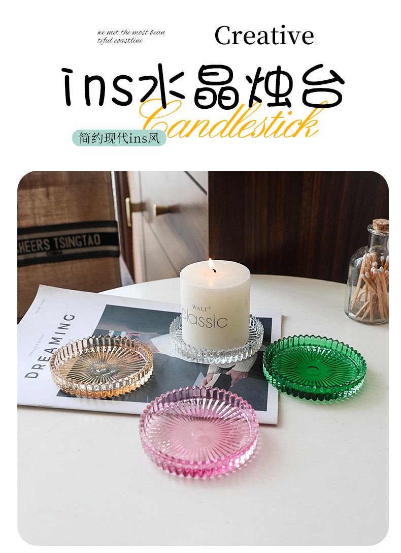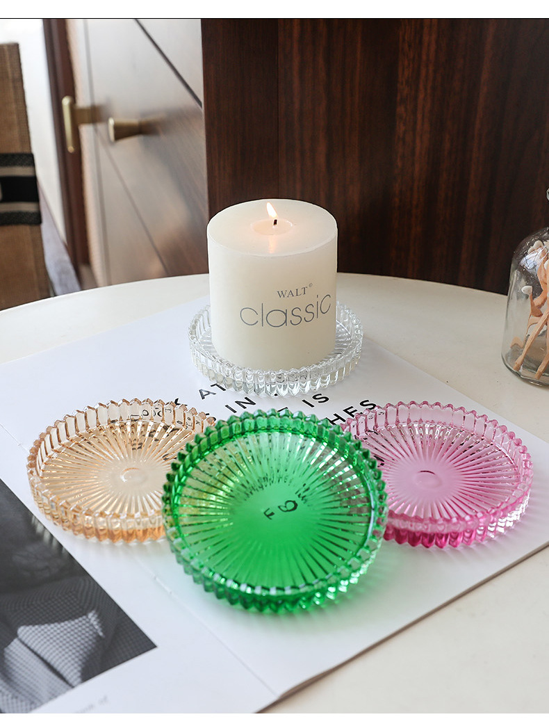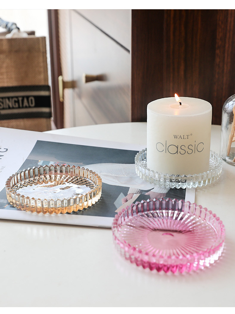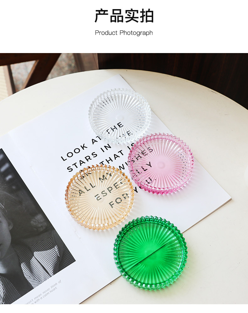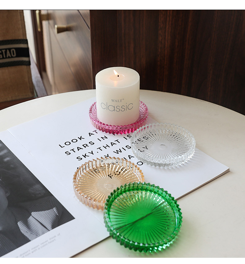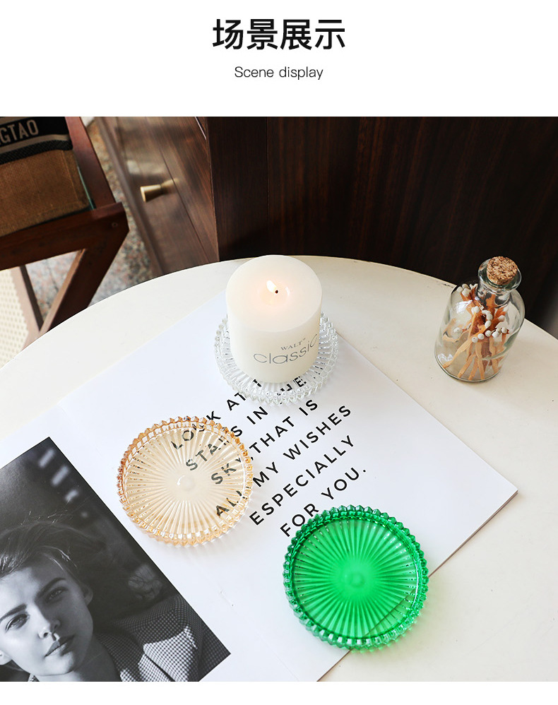 北欧インシンプルな透明ストライプギアキャンドルプレートアロマキャンドルパッドホルダーホームステイカフェデスクトップ装飾