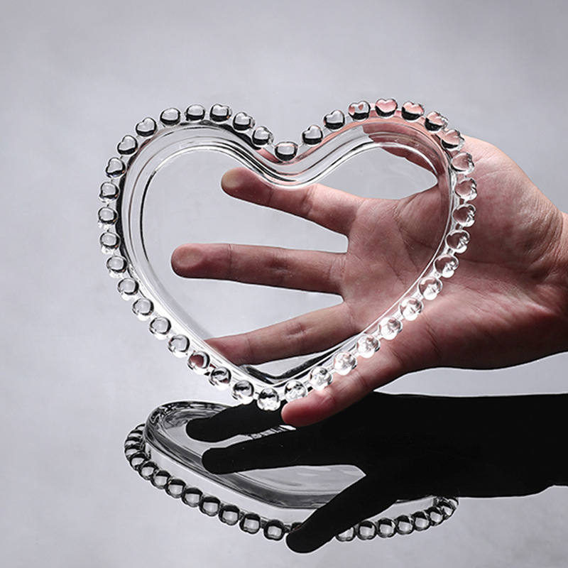 简约创意复古玻璃爱心水果玻璃盘摆件家居浪漫婚礼餐厅桌面装饰盘