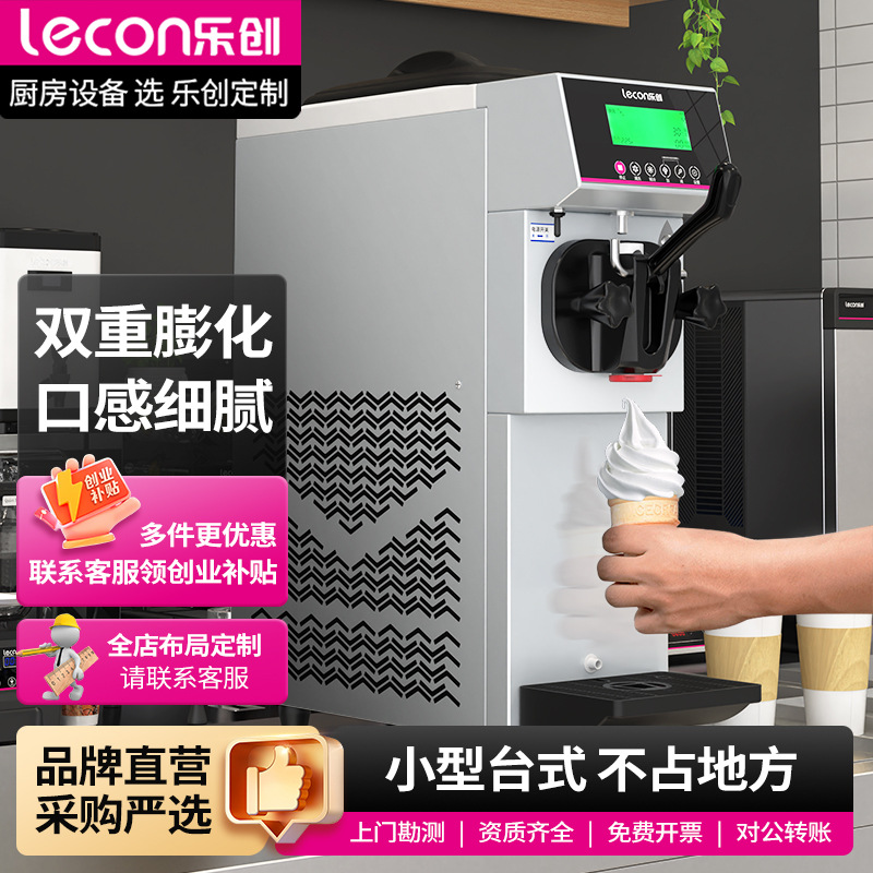 乐创冰淇淋机商用台式单头雪糕机小型冰激凌机迷你全自动甜筒机