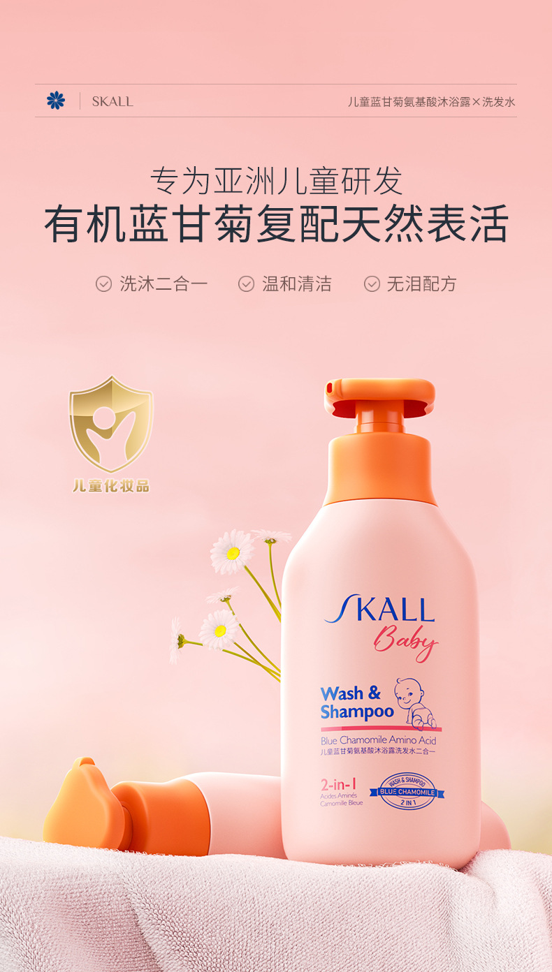 SKALL 子供用ブルーカモミールアミノ酸シャワージェルシャンプーツーインワン 350 ミリリットルマイルドクレンジングベビーケア