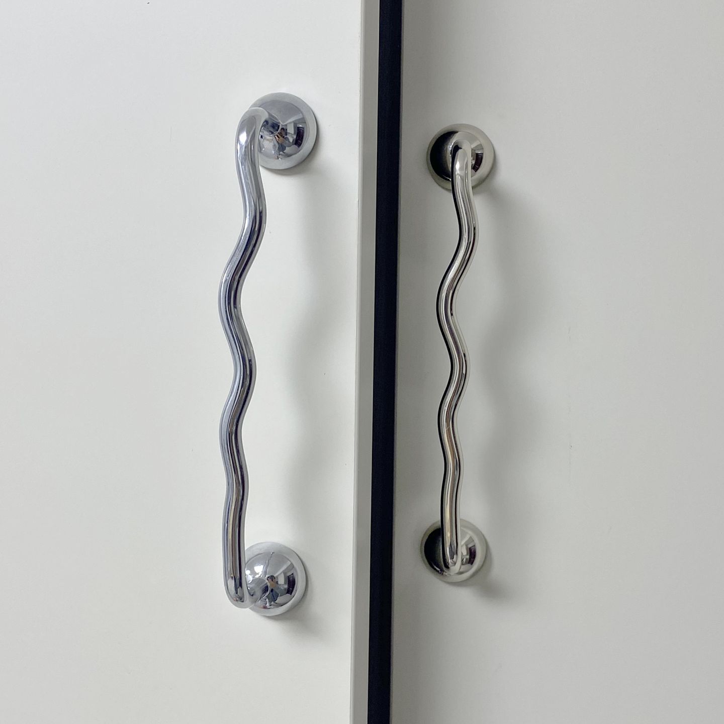 法式海浪拉手中古风橱柜门衣柜家具抽屉设计感轻奢钛银色抽屉把手