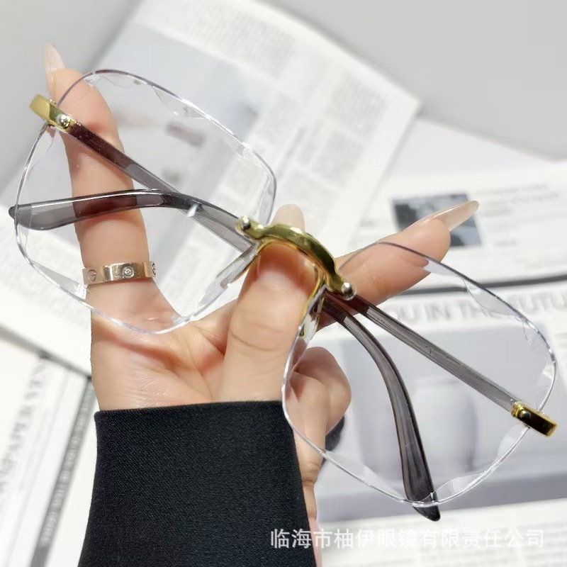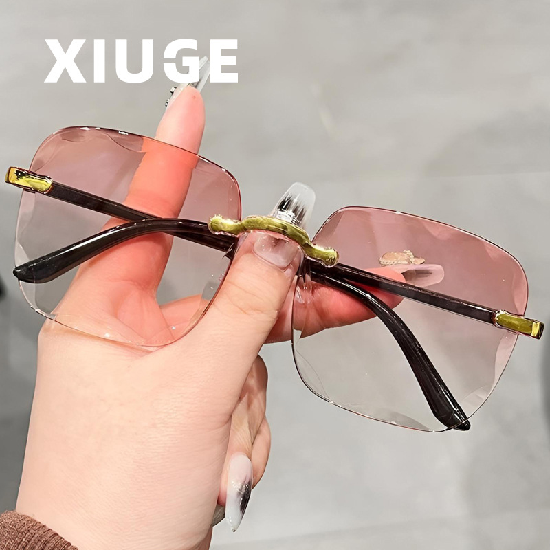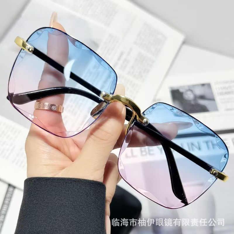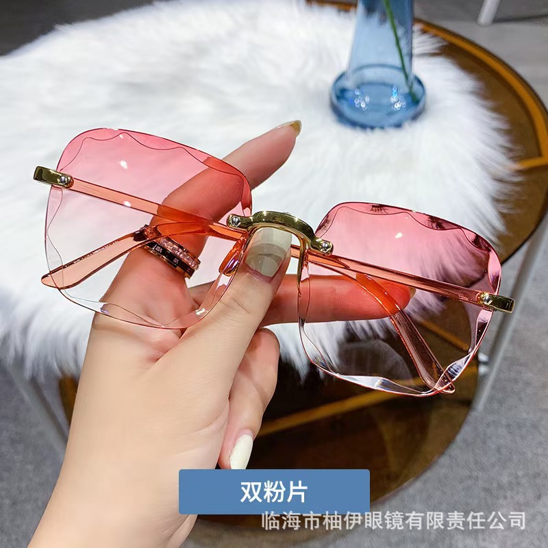 新しいフレームレスエッジカットサングラスインターネットセレブトレンディサングラスレディースファッションi韓国版抗UVサングラス
