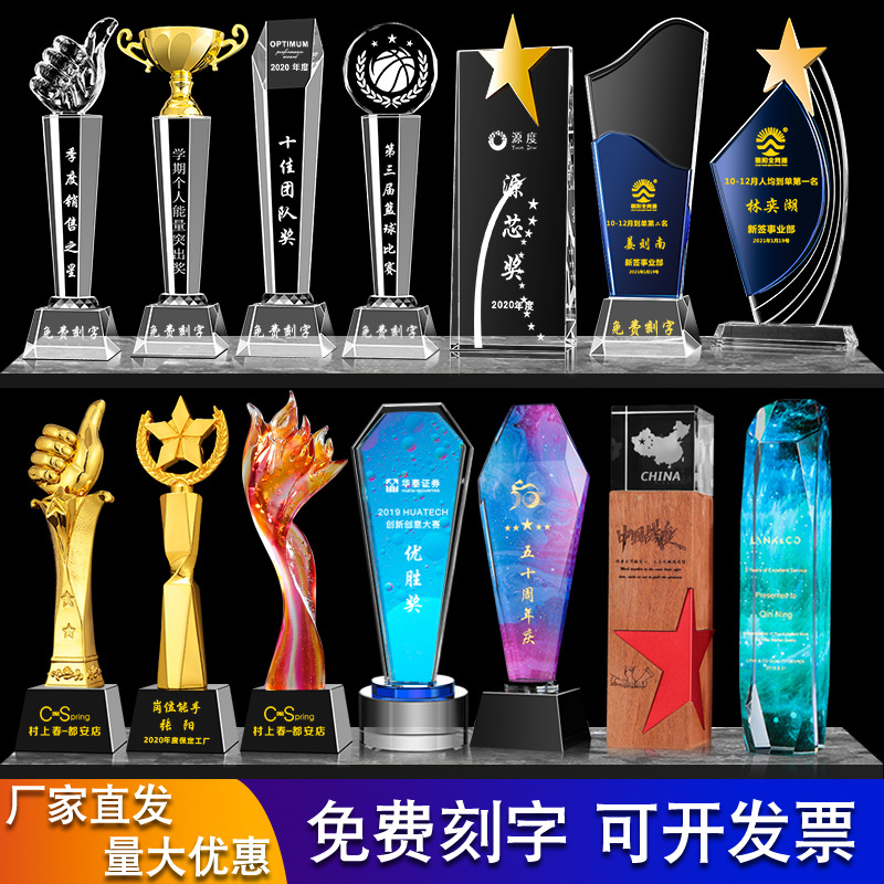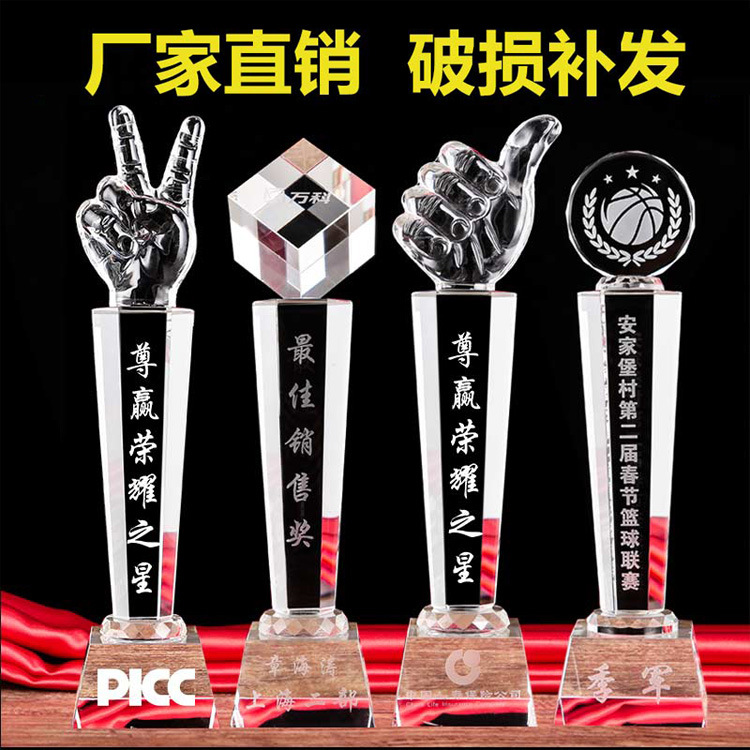 クリスタルトロフィー創意ガラス刃メダル制作レタリングコミュニティボランティア抗疫病記念品表彰トロフィー