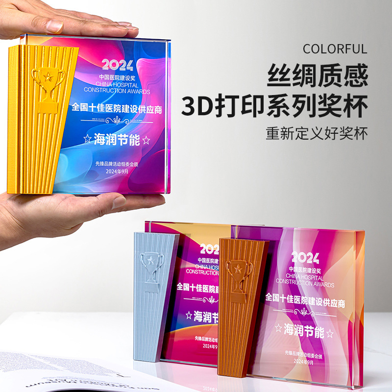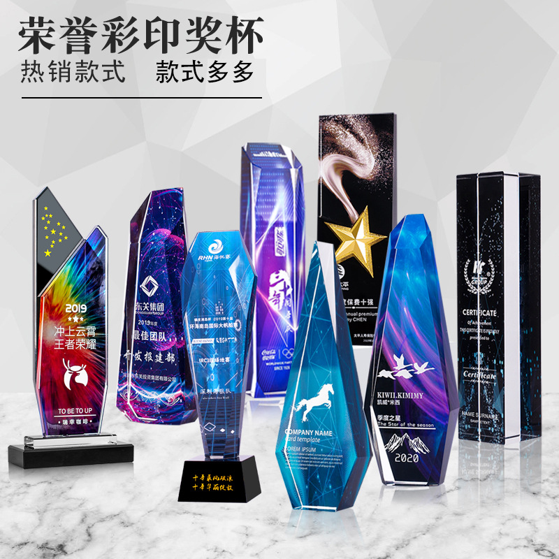 クリエイティブクリスタルトロフィーカスタムカラープリント写真斜面屏風クリエイティブ彫刻制作会社優秀社員メダル