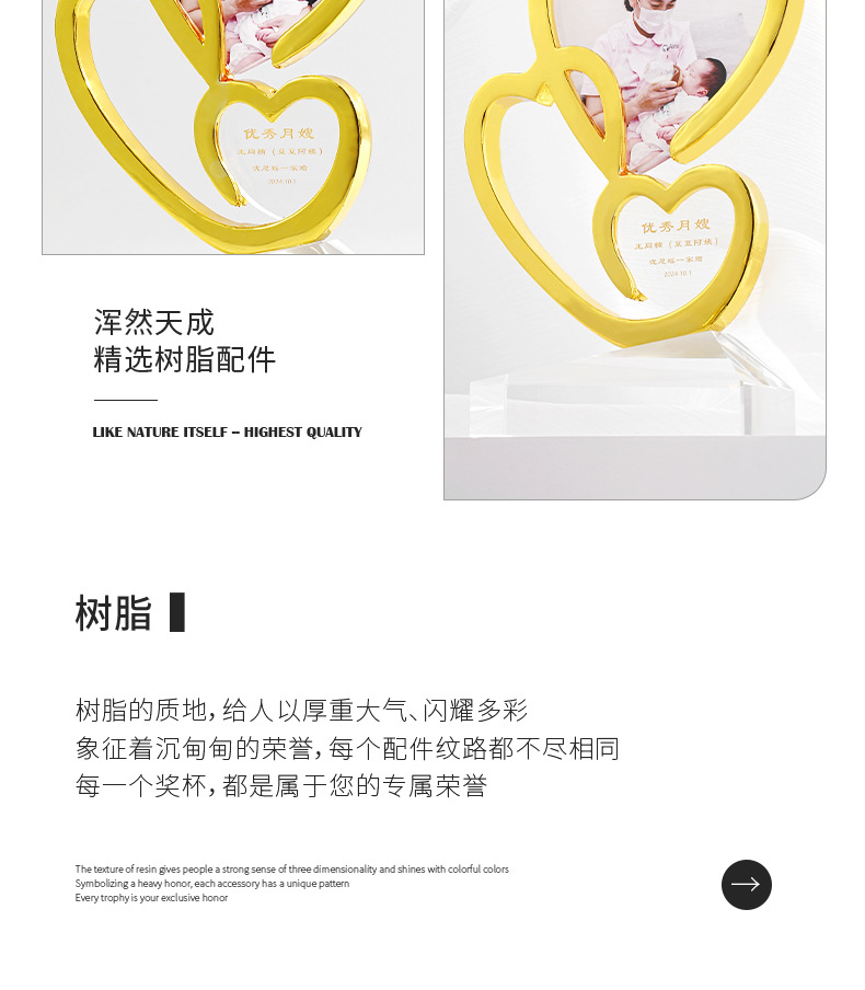 金メダル産後介護者トロフィー、介護者への感謝の言葉、女神の肖像写真、記念品、愛する医師