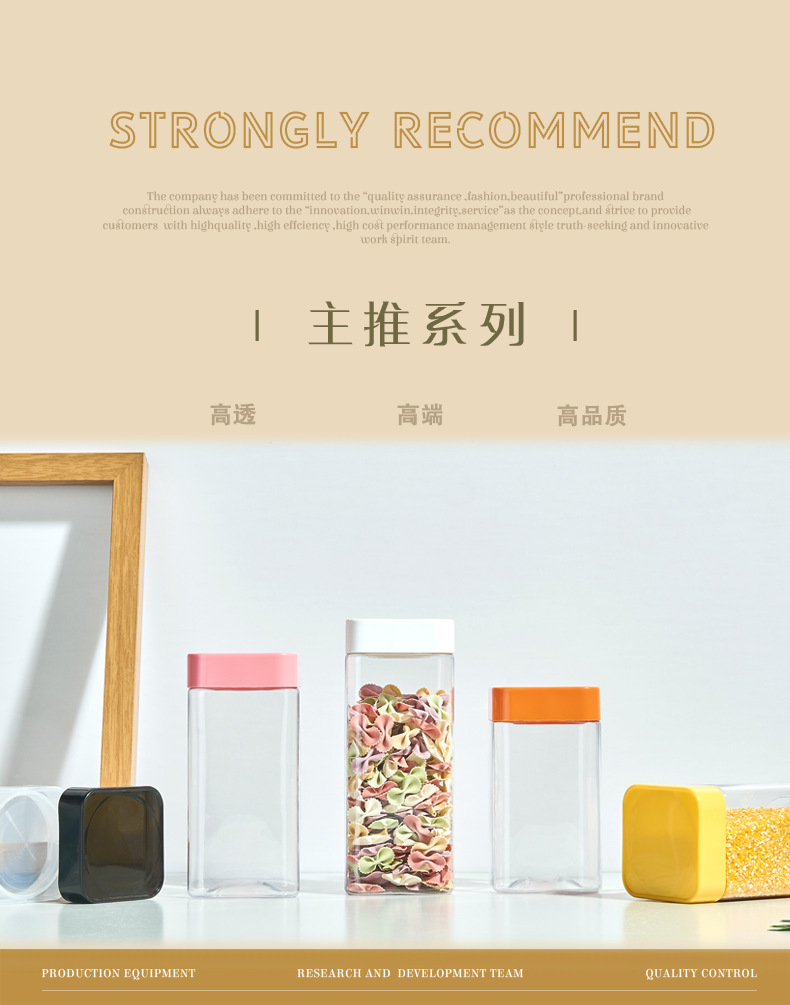 透明pet方形广口坚果食品含盖塑料罐 饼干中药蜜饯休闲食品密封罐