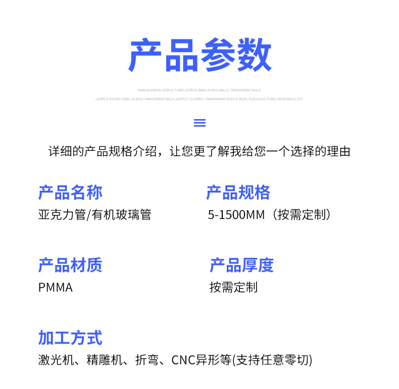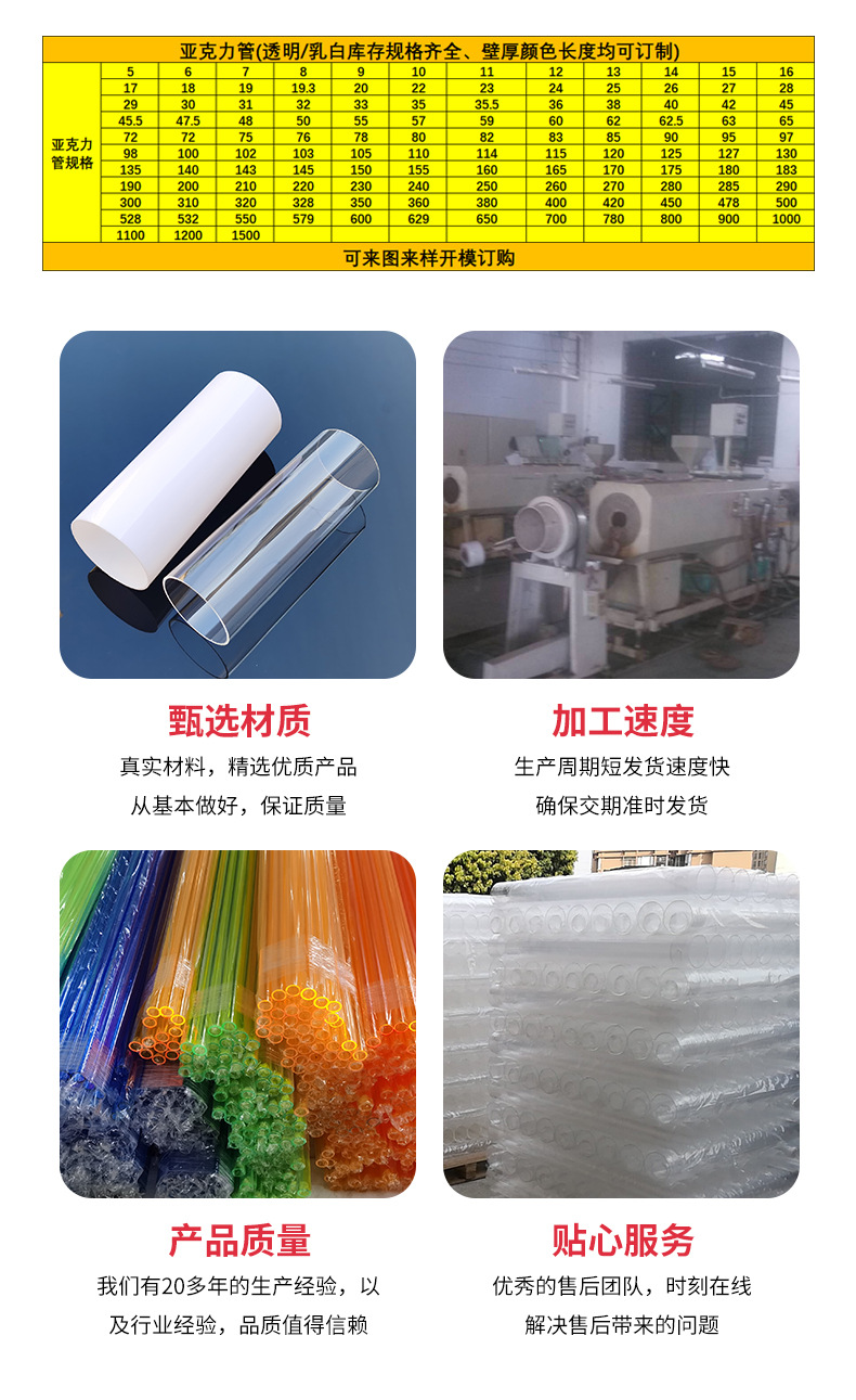 透明管(壁厚5mm)                                                                                乳白管(乳白透光灯罩专用,规格尺寸齐全)